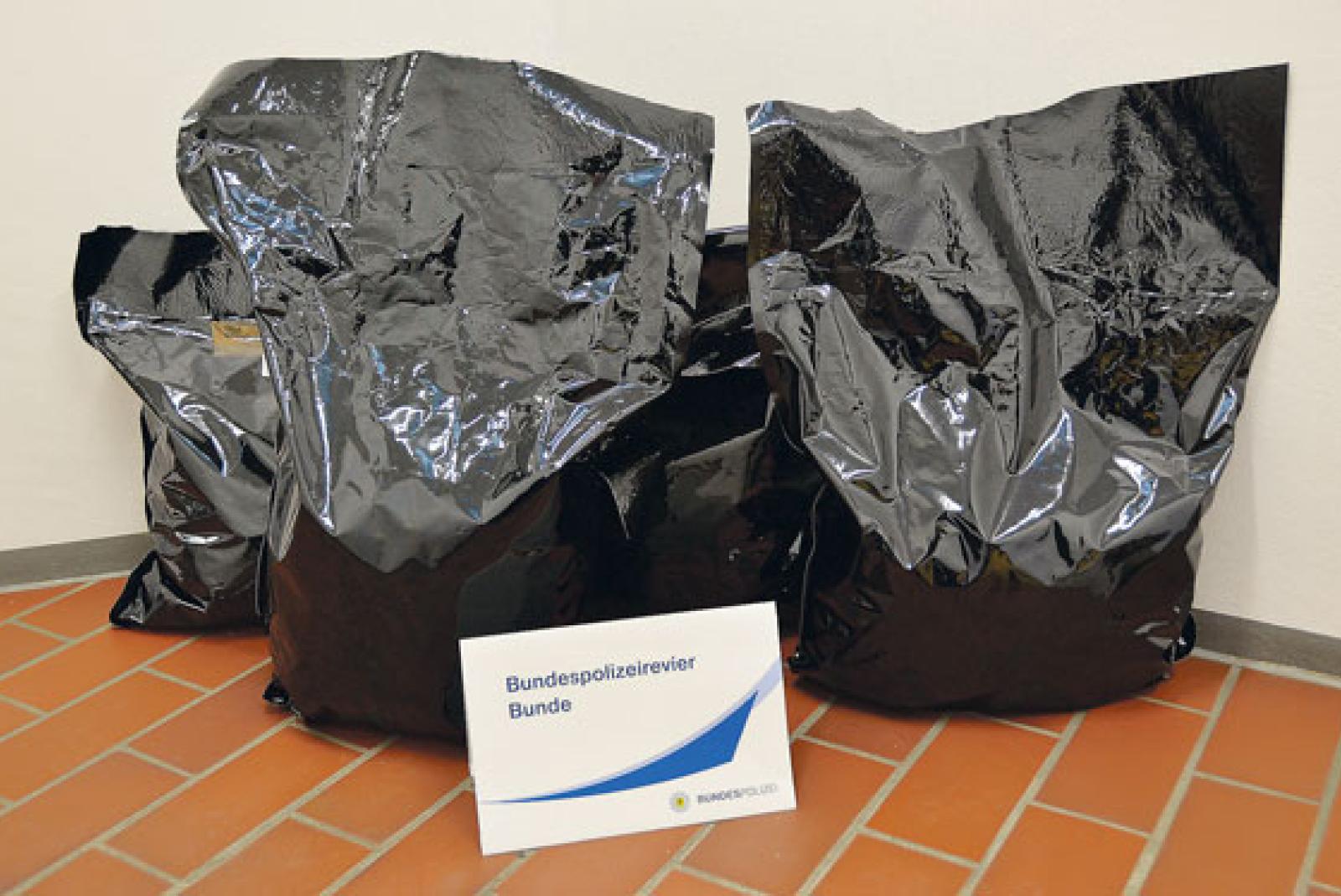 Beamte der Bundespolizei haben am Montagabend rund sieben Kilogramm Marihuana an der Anschlussstelle Papenburg aus dem Verkehr gezogen. Ein 22-Jähriger steht im Verdacht, das Rauschgift in einem Auto geschmuggelt und auch noch 13.300 Euro in der Unterhose versteckt zu haben, teilte die Bundespolizeiinspektion Bad Bentheim mit.