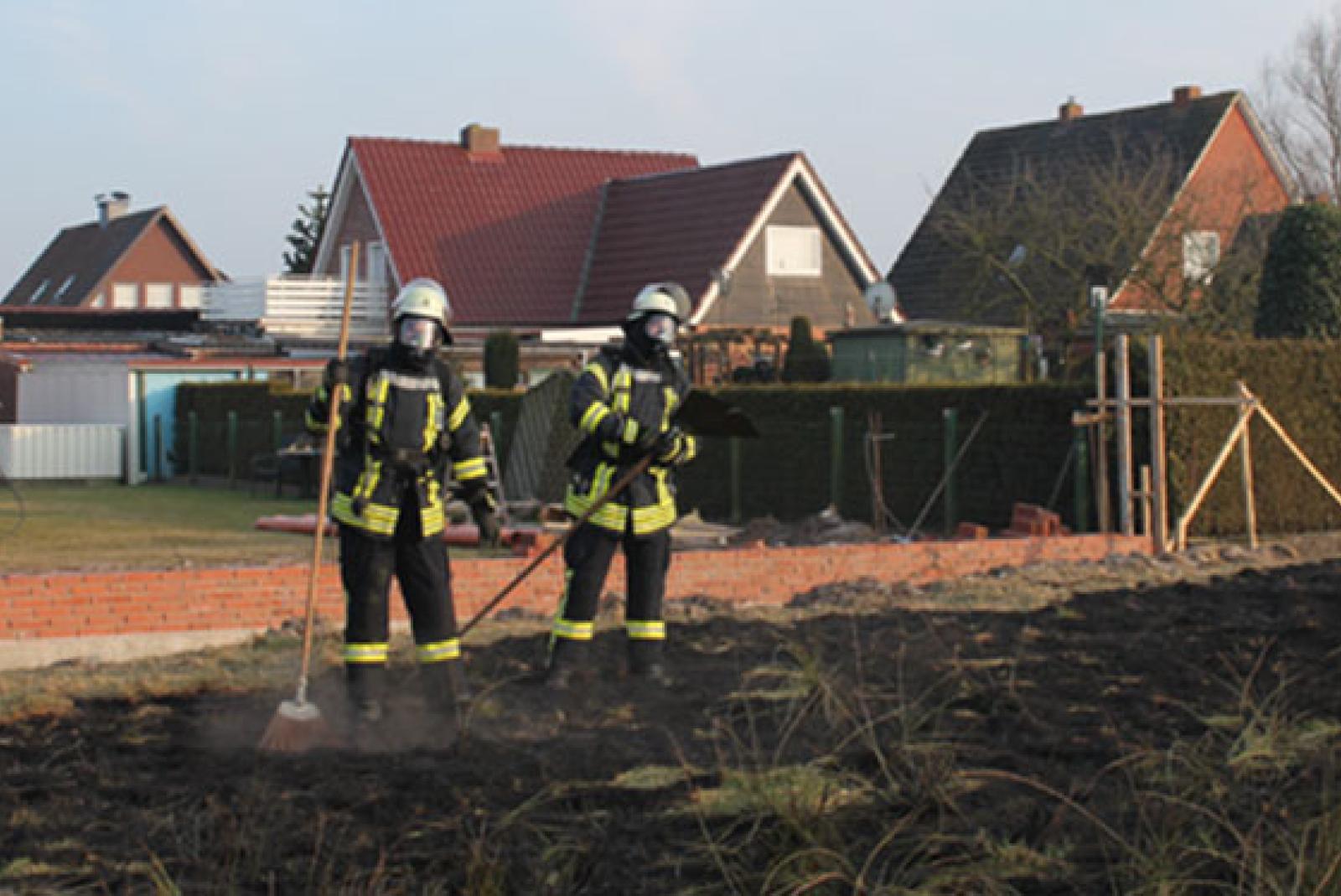 Anwohner hatten die Einsatzkräfte um 16.44 Uhr alarmiert, weil es auf einer Wiese hinter mehreren Wohnhäusern aus bislang unbekannten Gründen zu dem Flächenbrand gekommen war. Das Feuer konnte von den Einsatzkräften schnell mit Wasser aus dem Tank des Löschfahrzeugs und Feuerpatschen gelöscht werden, somit ist kein weiterer Schaden entstanden.