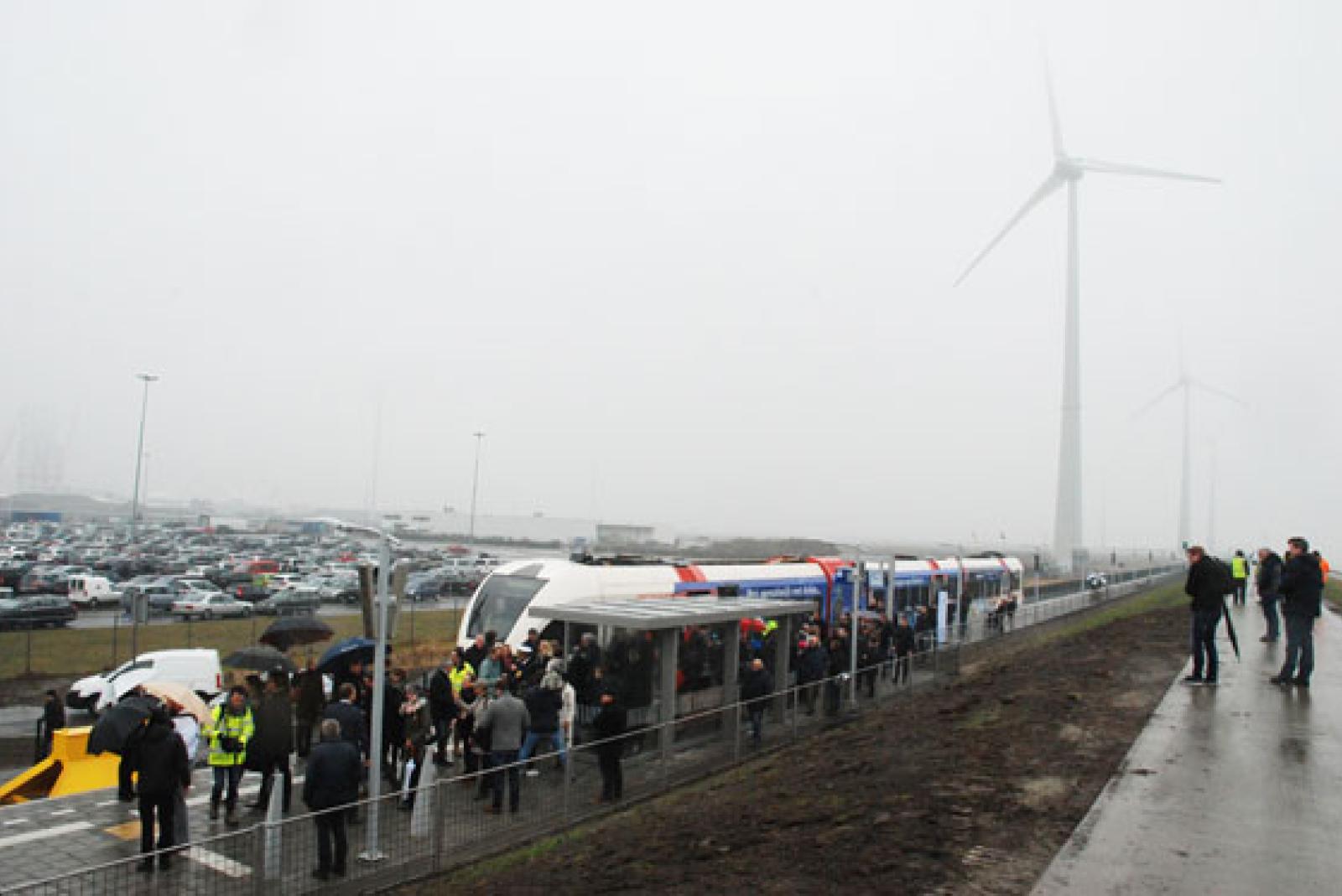 Die neue Bahnverbindung von Groningen zum Fähranleger in Eemshaven ist am Mittwoch feierlich eingeweiht worden. Der erste Zug verließ um 8.52 Uhr den Groninger Bahnhof, stoppte an diversen Zwischenstationen und kam mit kleiner Verspätung um 9.43 Uhr in Eemshaven an.