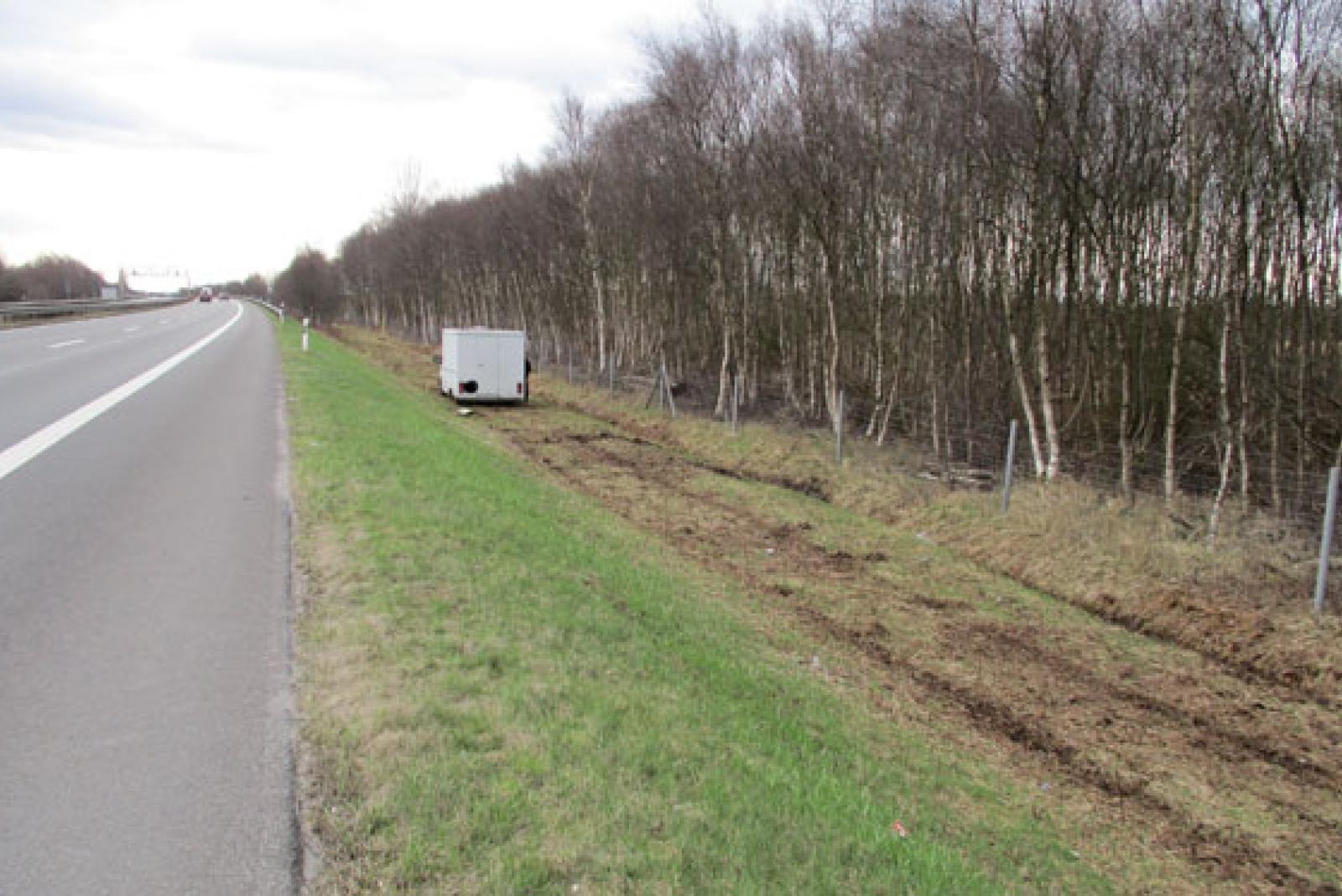 Hierbei kam er von der Fahrbahn ab und fuhr eine Böschung hinunter. Der Fahrer des VW Passat fuhr weiter, ohne sich um den verunglückten Transporter zu kümmern.