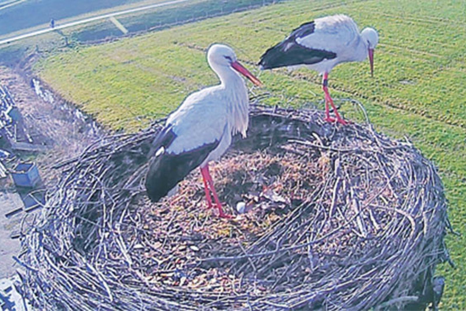Brutzeit im Storchennest auf dem Gelände des Sägewerks Hesse in Weener-Buschfeld: Am Dienstag legte das Weibchen ein erstes Ei (im Bild), gestern ein zweites. Weil Weißstörche bis zu fünf Eier legen, könnten in diesen ...