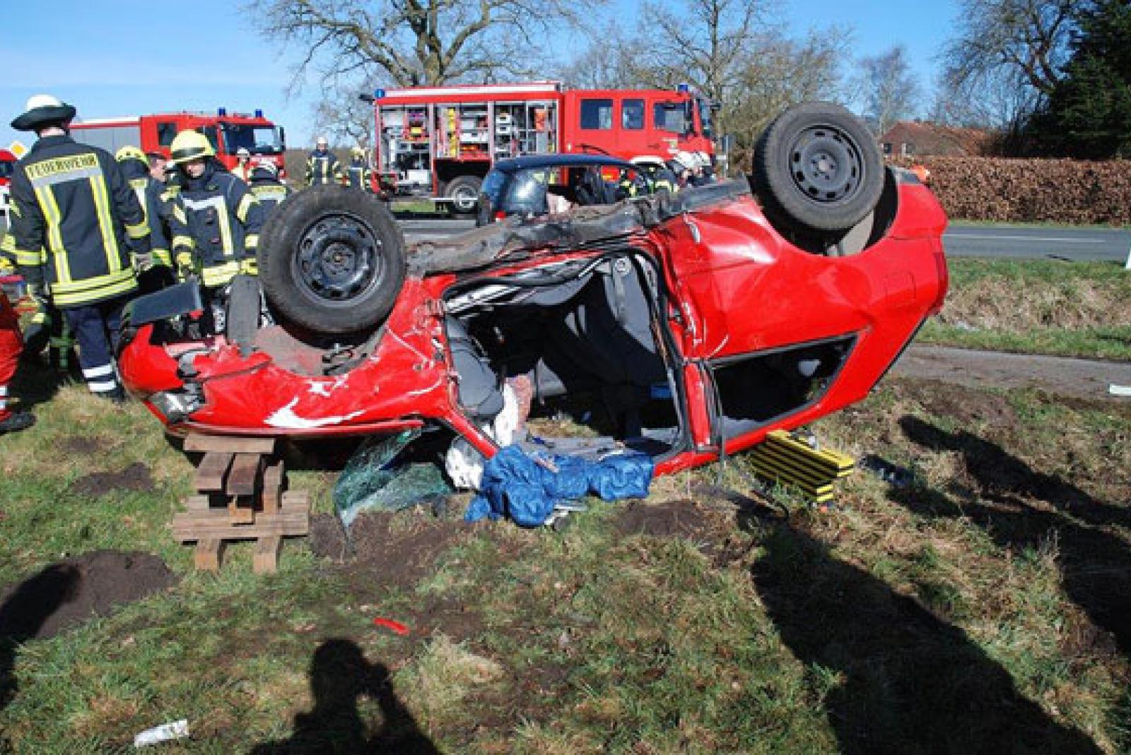Feuerwehr befreit Frau aus Auto