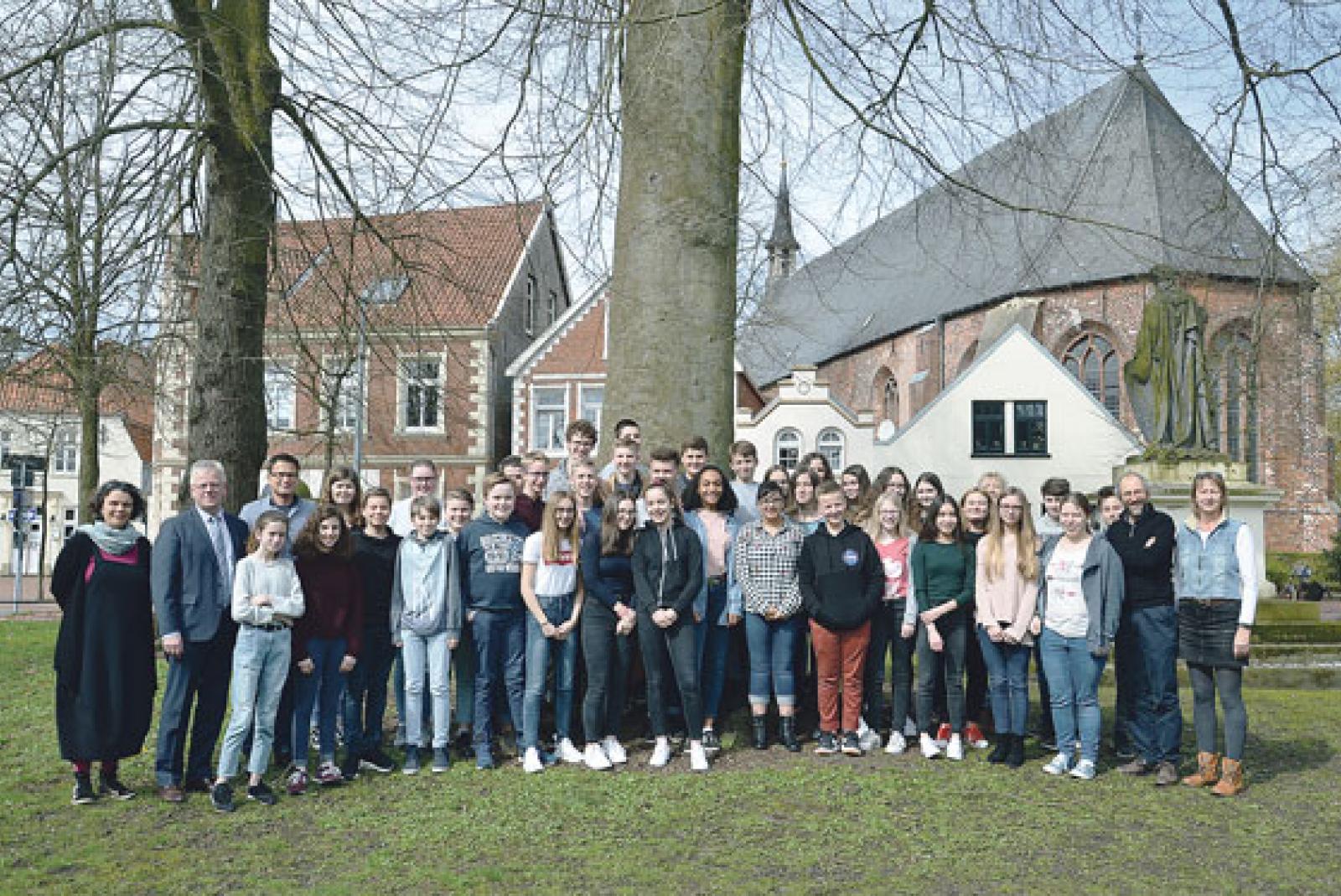 Eine Gruppe französischer Schülerinnen und Schüler aus Les Pieux ist am Mittwoch zusammen mit Schülern der Oberschule im Rathaussaal von Weener offiziell empfangen worden.