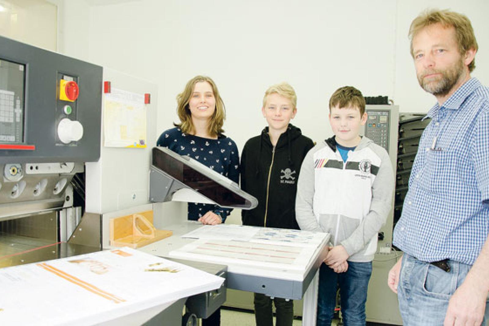 »Berufsluft« schnuppern heute zahlreiche Mädchen und Jungen in der Region beim »Zukunftstag«. Schülerinnen und Schüler in Niedersachsen erhalten an diesem Aktionstag Einblicke in verschiedene Arbeitsplätze und vielleicht auch eine Anregung für den eigenen, zukünftigen Berufsweg. Auch bei der Rheiderland-Zeitung sind drei junge Arbeitswelt-Entdecker zu Gast: (von links) Famke Hanken aus Weener (FCSO Veenhusen), Deiko Dorenbusch aus Veenhusen (TGG Leer) und Markus Ritz aus Wymeer (TGG Leer) informieren sich über die Produktion der Zeitung und die Arbeit in der Druckerei der Firma Risius in Weener. Die Mitarbeiter des Betriebes, wie Hans-Johann Hilbrands (rechts), erläutern geduldig die Fragen der Schüler und lassen sich über die Schulter schauen. Famke, Deiko und Markus gefällt es gut bei der RZ und sie dürfen auch schon die ein oder andere Aufgabe übernehmen.
