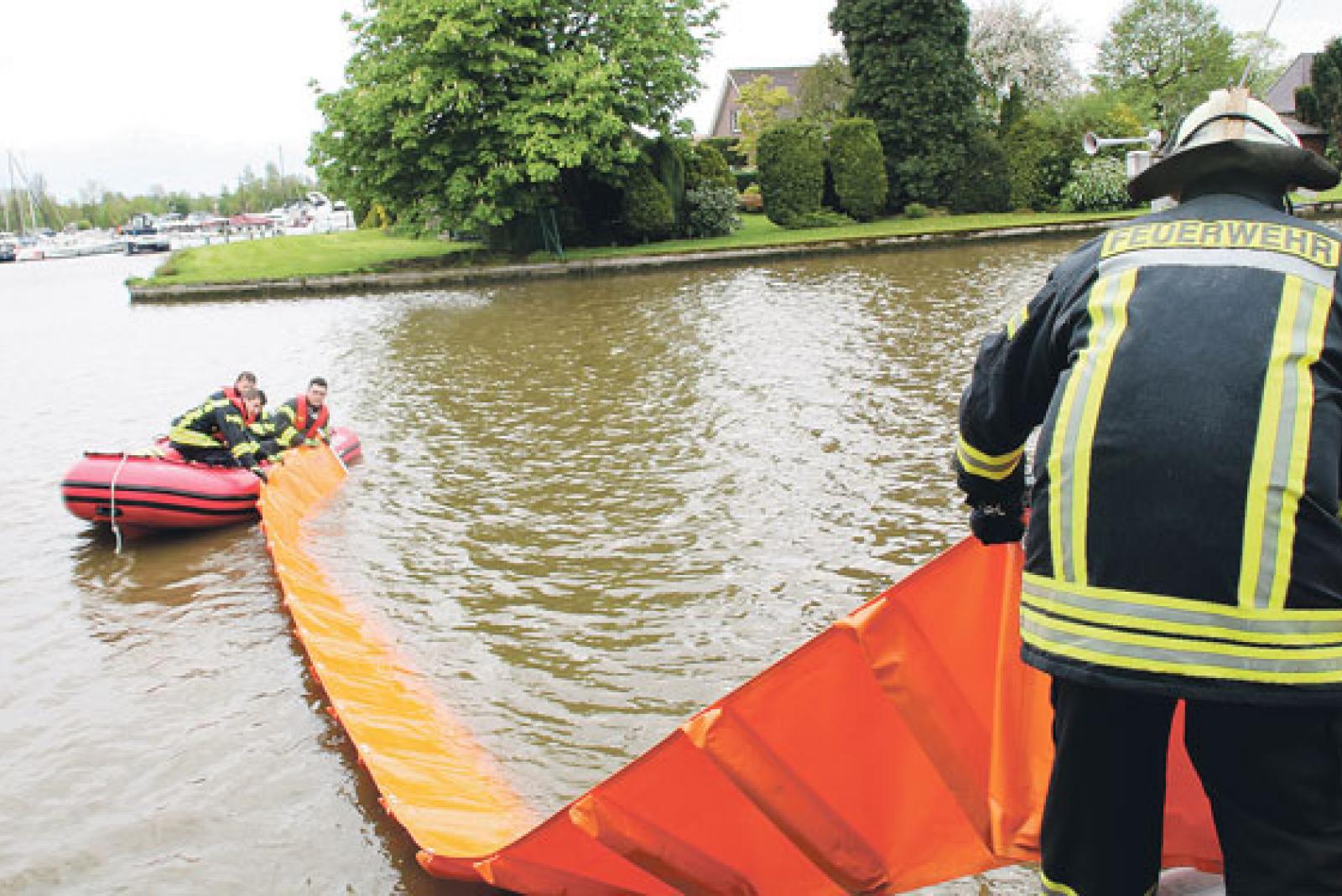 Feuerwehr legt Ölsperren im Hafen