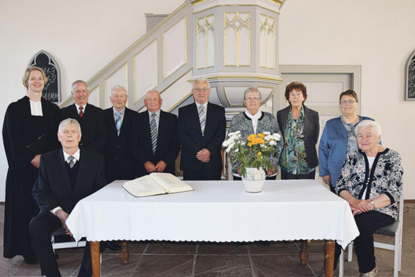 Neun von ihnen kamen jezt 65 Jahre später zur Feier ihrer Eisernen Konfirmation nach Holthusen.