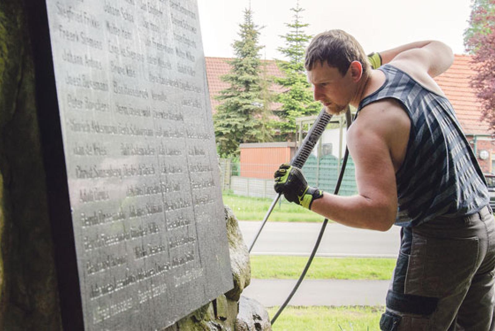 Kyffhäuser-Mitglieder reinigen Denkmal in Möhlenwarf