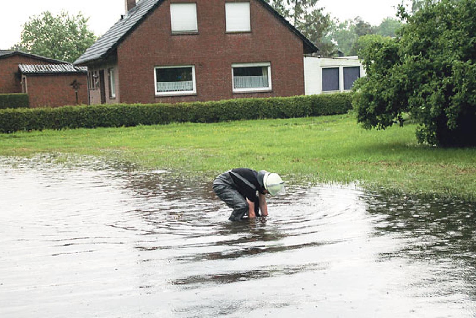 Nach dem Starkregen stand die Straße »Zur Heide« in Holthuserheide in einer Kurve am Sonntagabend komplett unter Wasser und musste rund zwei Stunden für den Kfz-Verkehr voll gesperrt werden.