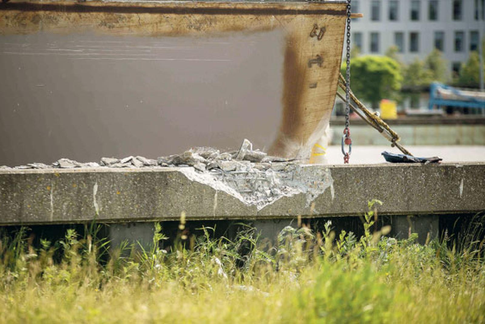 Schiffselement prallt gegen Betonwand