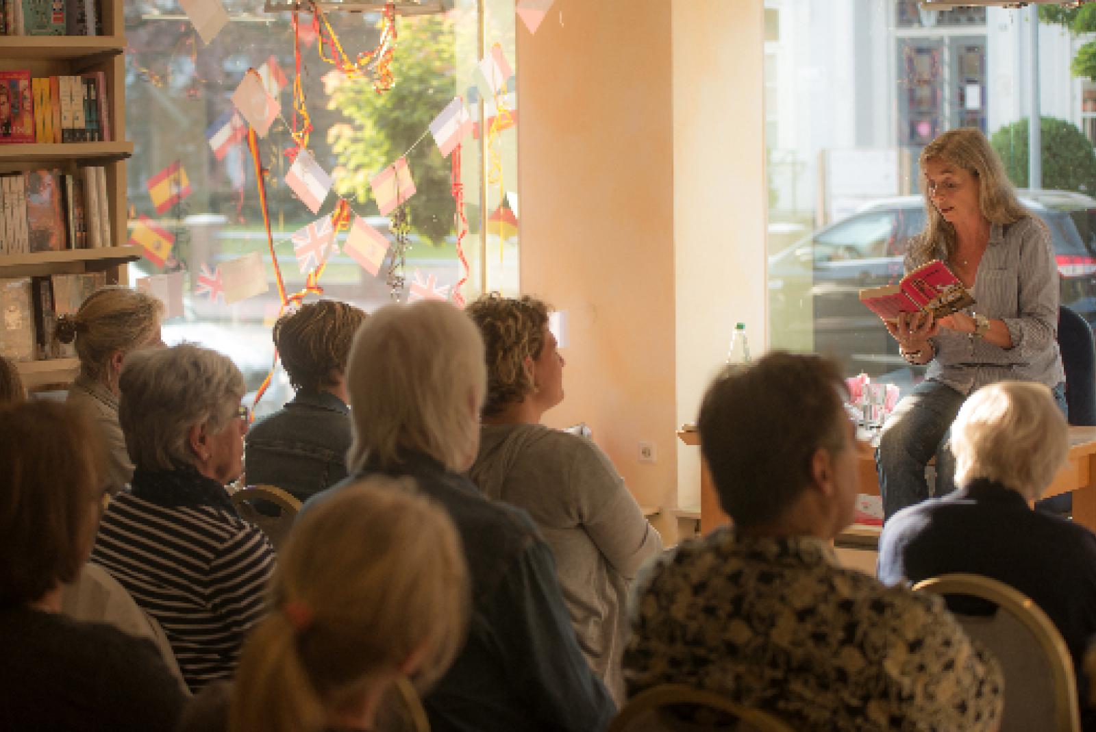Premieren-Lesung in der Buchhandlung Klinkenborg in Weener: Vor gut 20 Zuhörern stellte Birgit Rutenberg aus Kirchborgum jetzt ihren neuen Krimi »Vier Pfoten im Dünensand« vor.