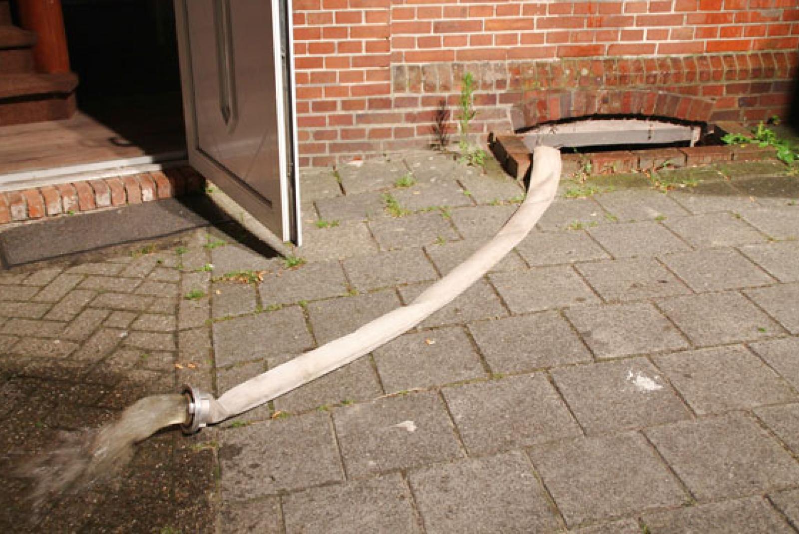 Nachdem die Feuerwehr das Wasser an der Hauptleitung vor dem Haus abgedreht und der Energieversorger den Strom abgestellt hatten, konnten die Einsatzkräfte das Wasser mit der Tauchpumpe aus dem Keller lenzen. Danach wurde die Wasserversorgung im Haus abgedreht.