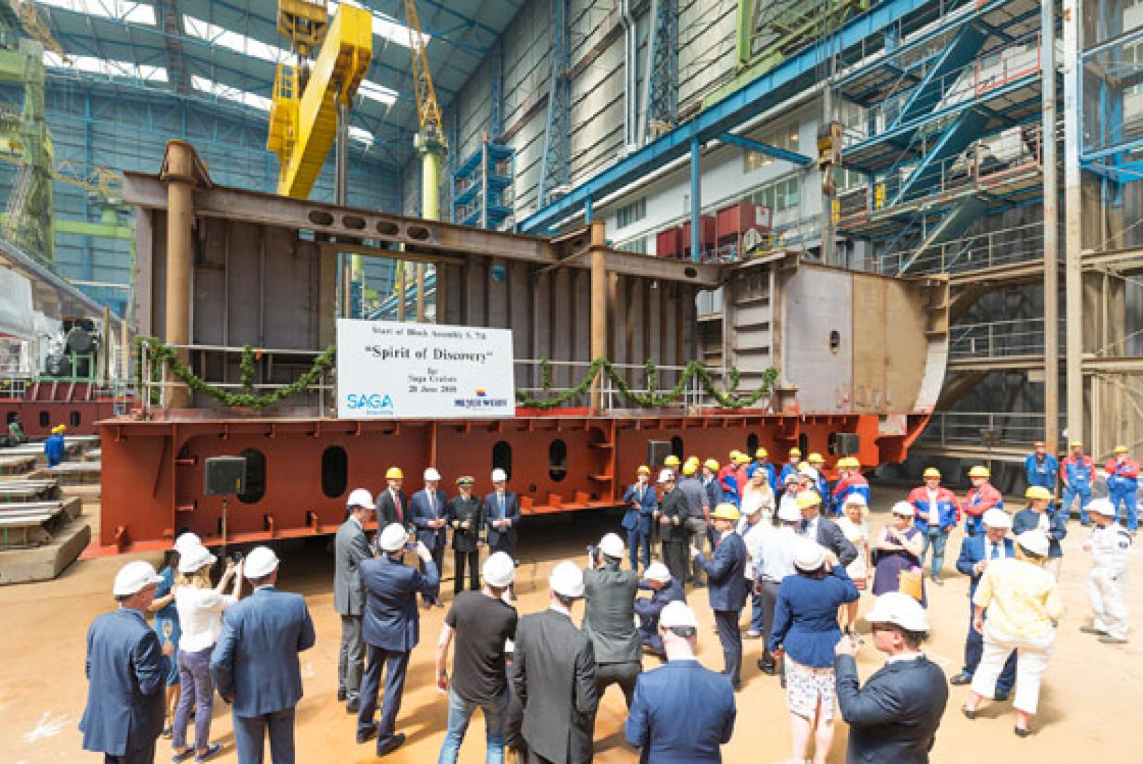 Heute erfolgte die Kiellegung des ersten neuen Schiffes für die britische Reederei Saga Cruises auf der Meyer Werft in Papenburg. Der erste Block der »Spirit of Discovery« wiegt 320 Tonnen und ist 5,5 Meter hoch, 23,5 lang und 20 Meter breit. Das erste ...