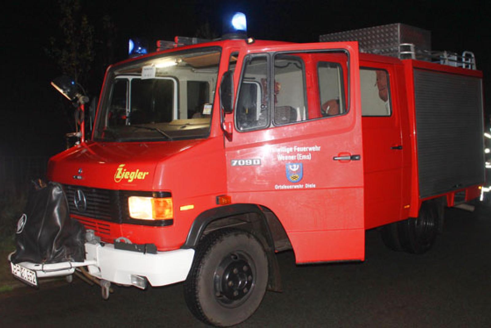 Die Feuerwehr Diele war mit dem Löschgruppenfahrzeug LF 8 und die Feuerwehr Weener war mit dem Tanklöschfahrzeug TLF 16 und mehreren Einsatzkräften vor Ort.
