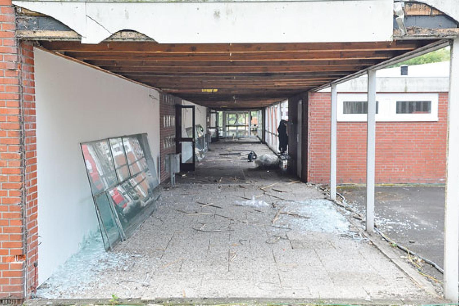 Es geht langsam voran an der Oberschule in Weener: Seit dieser Woche laufen die vorbereitenden Arbeiten für den geplanten Neubau. Mitarbeiter der Firma »Hermann Kassens« aus Papenburg reißen als erstes den Pausengang ab.