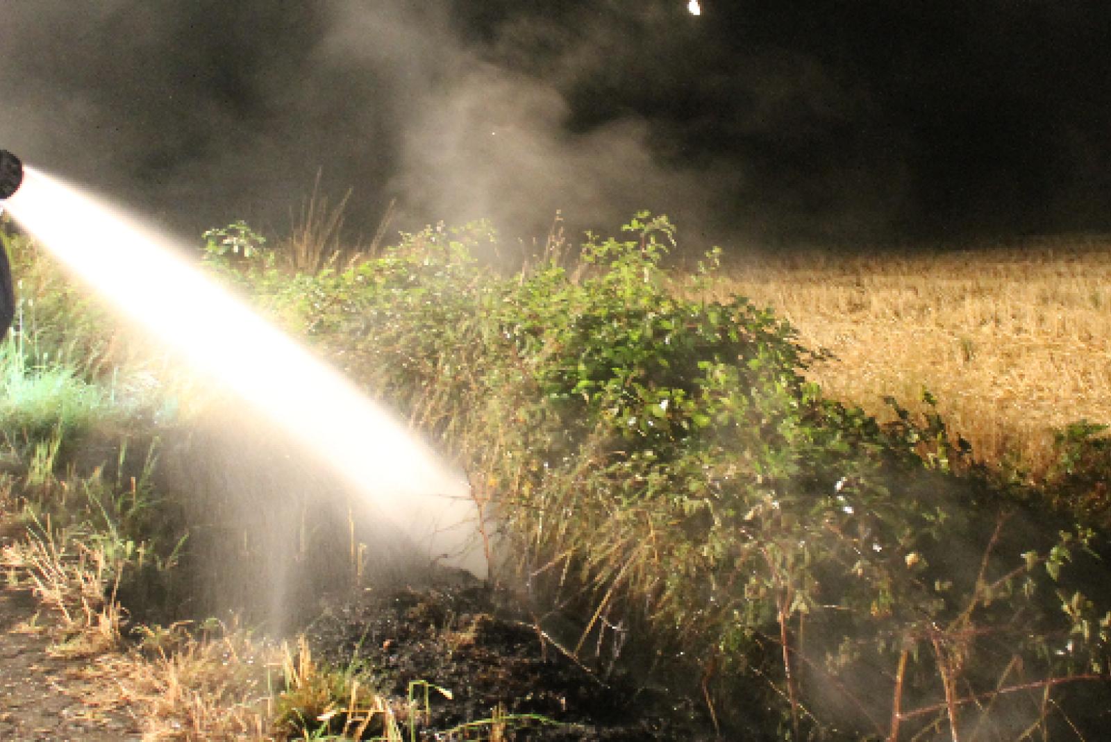 Am Achterweg in Wiegboldsbur brannte in der Nacht von Freitag auf Samstag eine Böschung auf zwölf Metern Länge. Die Feuerwehr Wiegboldsbur wurde daraufhin um 0.37 Uhr alarmiert. Die 14 Einsatzkräfte, die mit zwei Löschfahrzeugen an der Einsatzstelle vor Ort waren, hatten das Feuer rasch unter Kontrolle und nach etwa 15 Minuten gelöscht. Mit im Einsatz befand sich eine Streifenwagenbesatzung der Polizeiinspektion Aurich/Wittmund.
