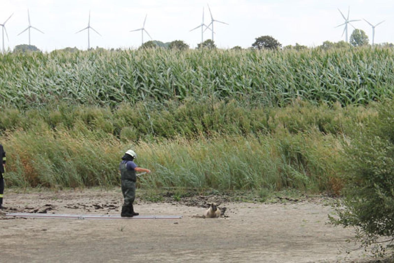 Feuerwehr rettet Schaf aus dem Morast