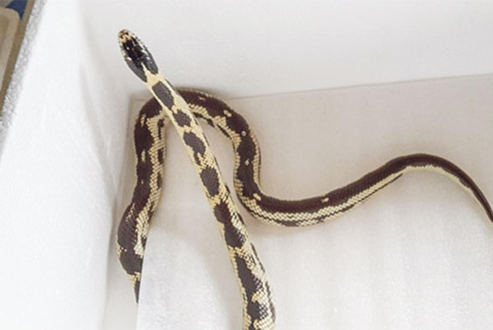 Eine Frühstückspause der besonderen Art erlebten die Mitarbeiter des Autohauses Züchner in Weener am Donnerstagvormittag: Eine Schlange hatte es sich im Aufenthaltsraum gemütlich gemacht.