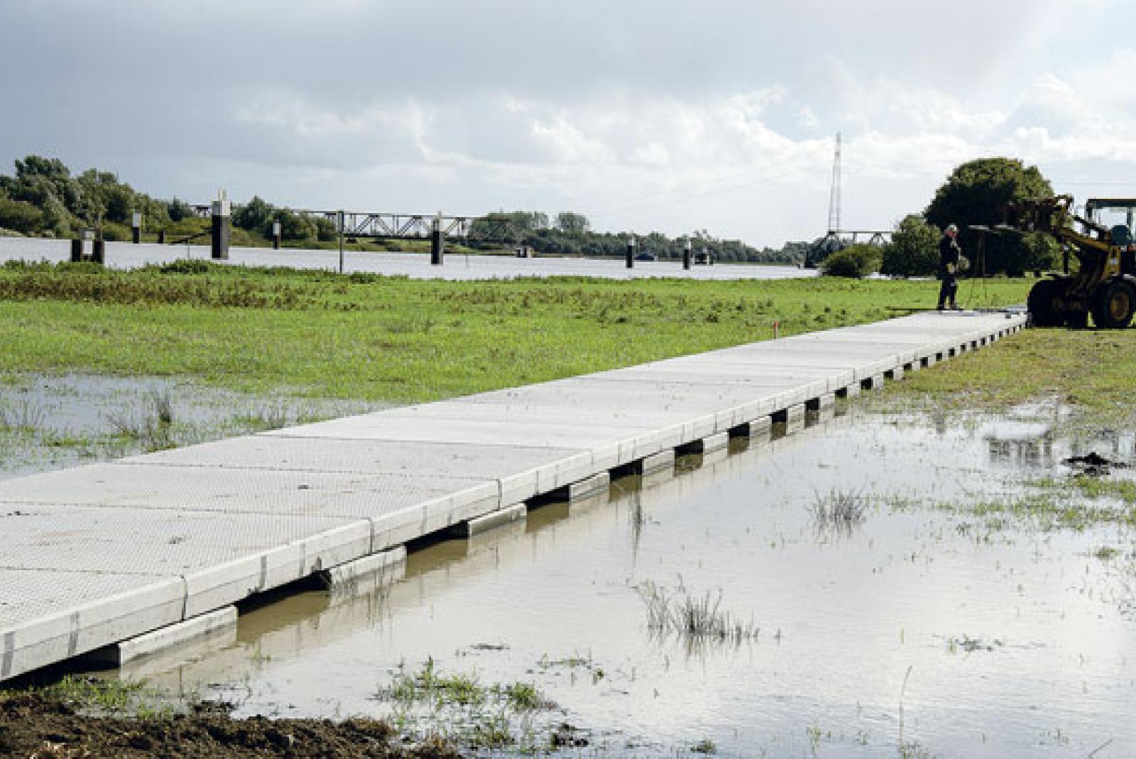 Die zweite Zuwegung zum Anleger der Friesenfähre in Weener nimmt weiter Formen an. Mitarbeiter der Firma Bartels aus Papenburg haben bereits damit begonnen, Platten auf den Betonfundamenten zu installieren. Die für Hochwasser vorgehaltenen Aussparungen zwischen den Elementen mussten ...