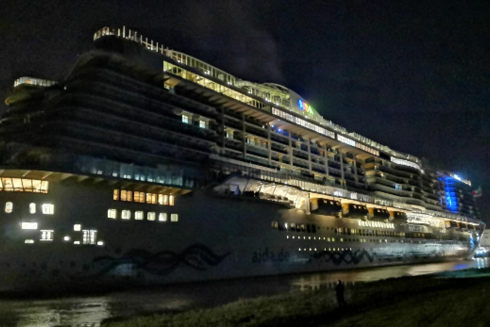 Der Luxusliner "Aida Nova" ist heute Abend planmäßig zu seiner Nachtfahrt über die Ems aufgebrochen. Um kurz nach 20 Uhr hat das Schiff den Hafen vor der Meyer Werft in Papenburg verlassen und hat die Dockschleuse passiert.