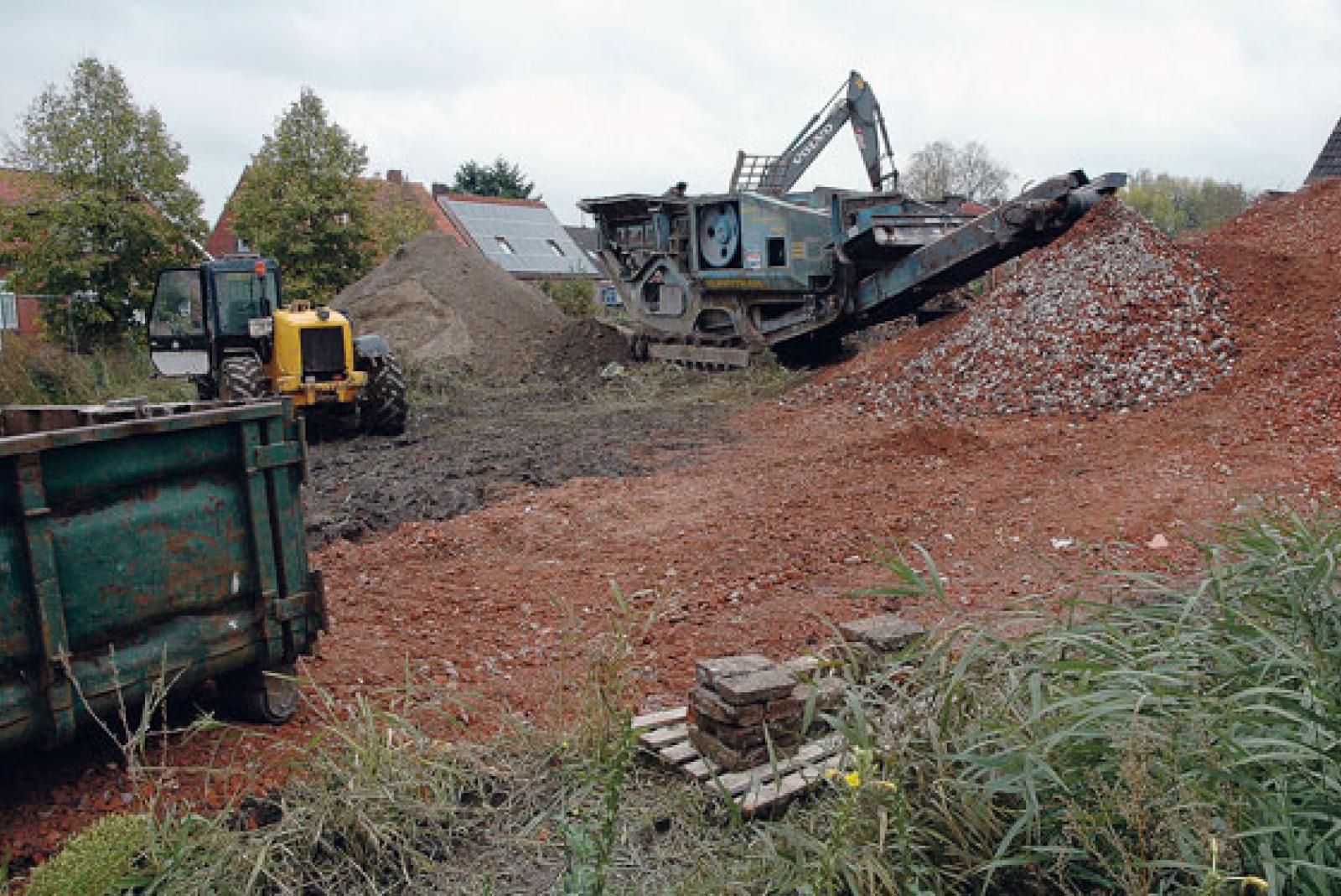 Aufräumarbeiten auf dem Gelände des ehemaligen Gasthofs »Frisia« an der Ortsdurchfahrt in Bingum: Das Lohnunternehmen Eiso Busemann aus Bunde hat am Dienstag damit begonnen, den Schutt des im Januar 2017 abgebrochenen Gasthofs abzutragen. Der Schuttberg wird geschreddert und spä...