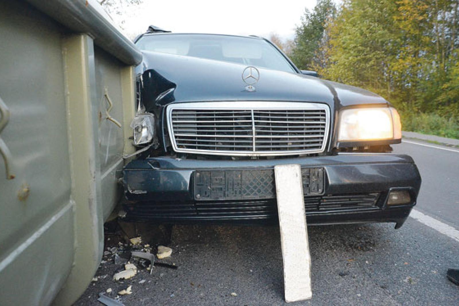 Auto rammt Baustellen-Container: Fahrerin bleibt unverletzt