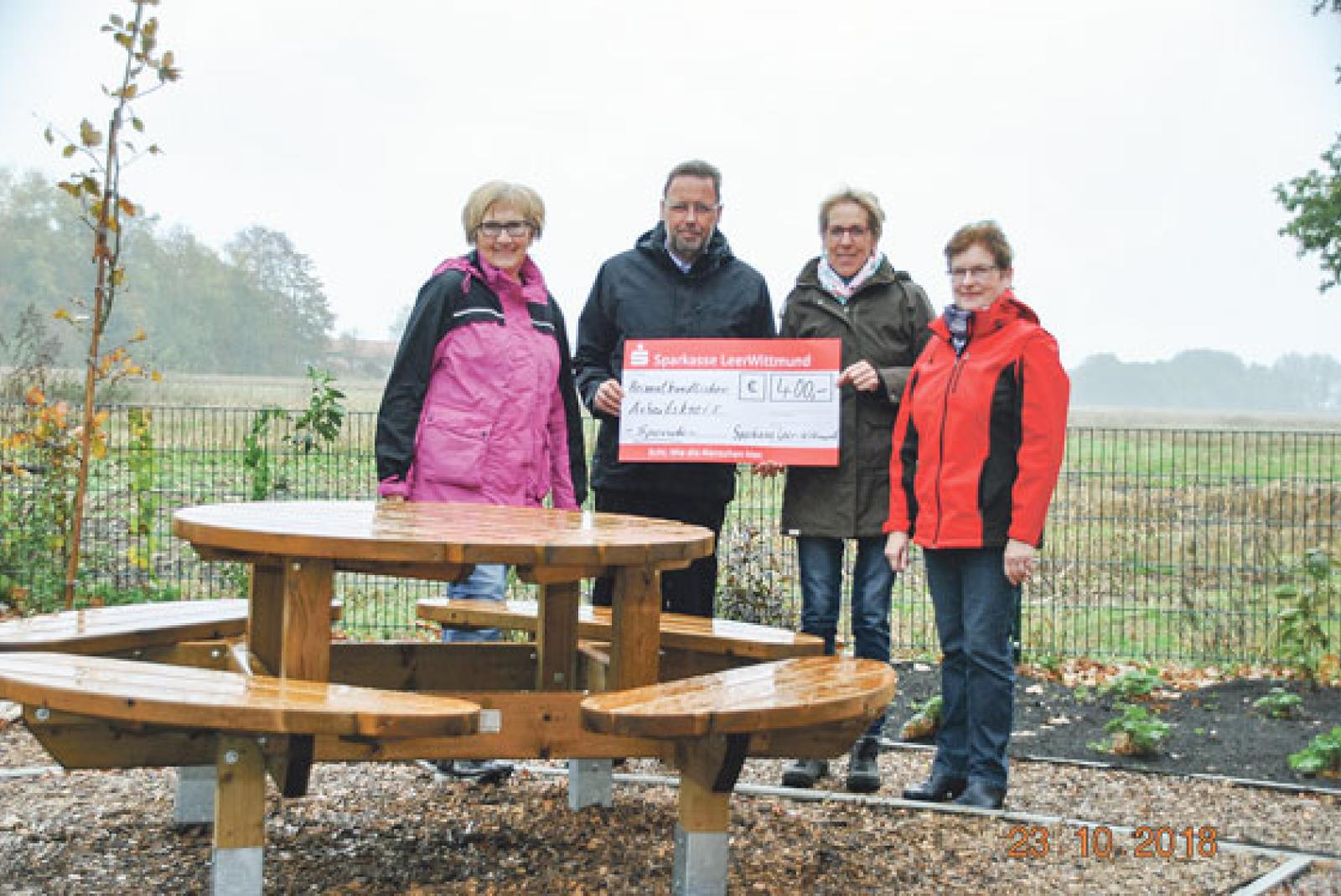 Eine Rundbank hat der Heimatkundliche Arbeitskreis Weenermoor - Möhlenwarf - St. Georgiwold - Beschotenweg jetzt angeschafft und aufgebaut. Ermöglicht wurde diese neue Rastmöglichkeit durch eine Spende der Sparkasse LeerWittmund.