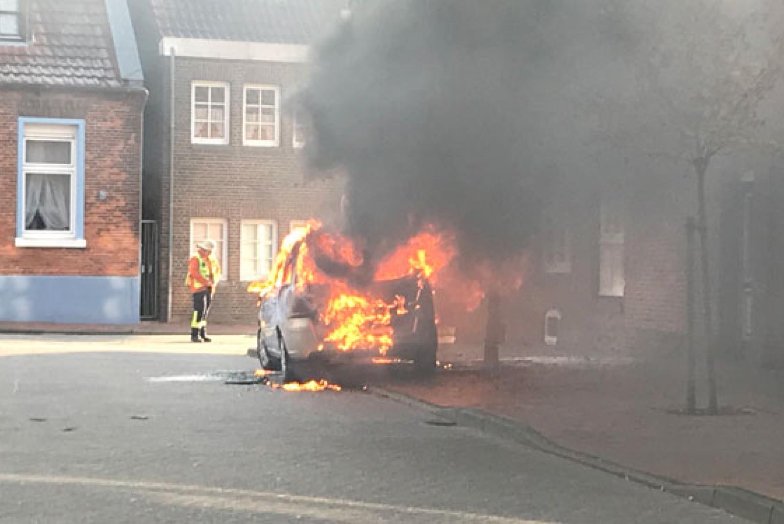 Vollständig ausgebrannt ist am Mittwochvormittag ein Opel Zafira im Steinburgsgang in Leer. Wie die Kreisfeuerwehr mitteilte, war die Fahrerin aus Bunde gekommen. Sie konnte das Auto noch am Straßenrand abstellen und einer weiteren Frau mit einem Rollator aus dem Wagen helfen. Das Feuer breitete sich binnen weniger Minuten aus, sodass der Pkw in Vollbrand stand. Ein Baum am Straßenrand begann ebenfalls zu brennen. Außerdem bedrohten die Flammen ein Wohnhaus unmittelbar.