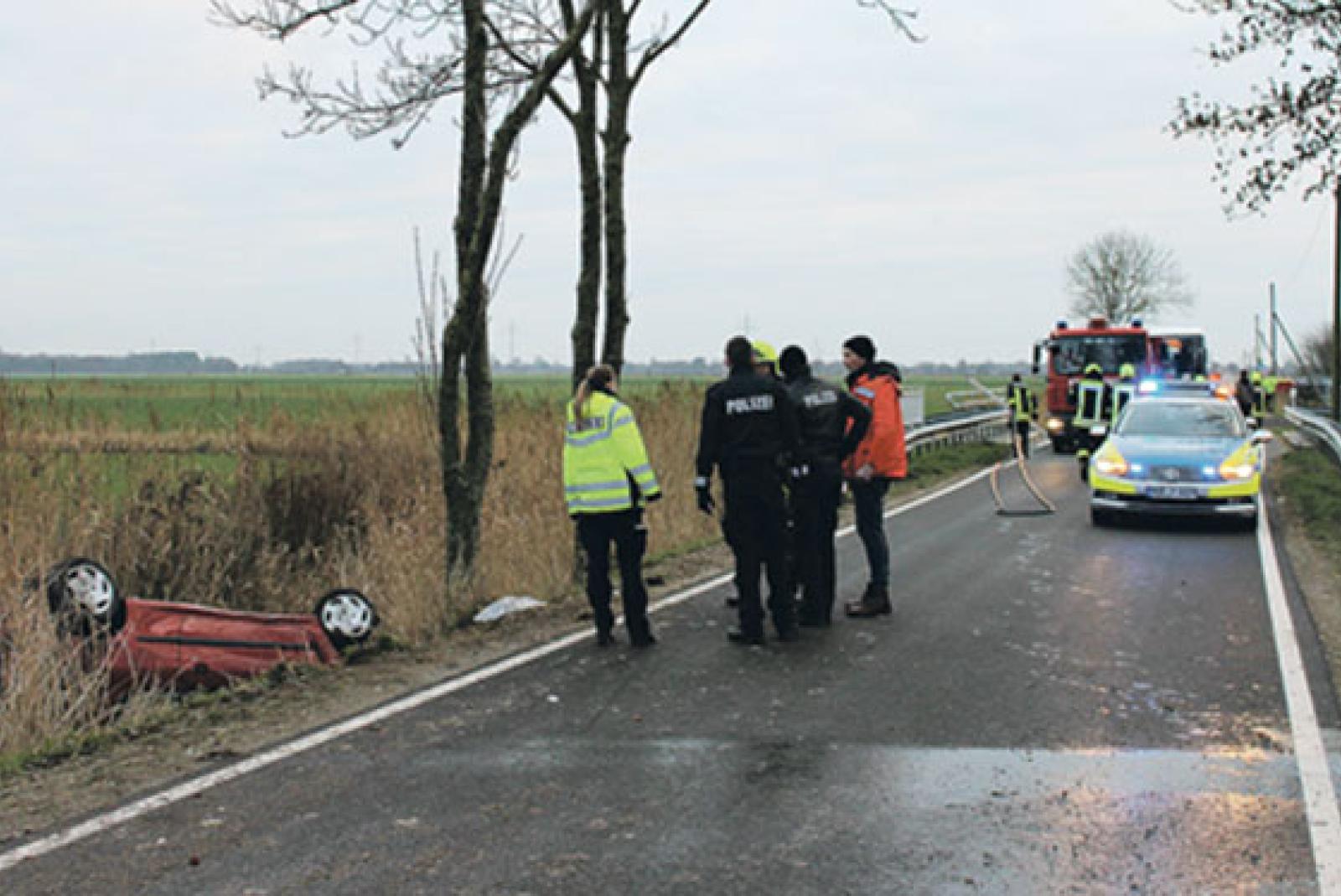 Bei einem Verkehrsunfall in Osteel (Brookmerland) hat eine 29-jährige Frau aus Norden heute Morgen schwere Verletzungen erlitten. Sie wurde mit einem Rettungshubschrauber in ein Krankenhaus gebracht.
