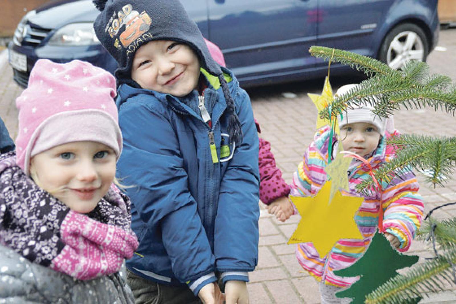 Sterne, Stutenkerle, Nikolausstiefel und Tannenbäume - der große Christbaum auf dem Sportgelände des Heidjer SV ist bereit für seinen großen Auftritt. Mit Begeisterung haben ihn die Kinder des Kindergartens Mikado und der Filius-Krippe gestern Morgen ...