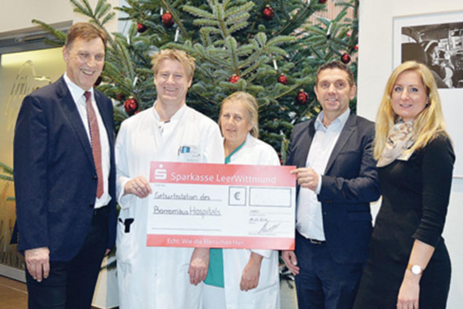 Über 8000 Euro konnte sich nun das Borro-Team der Gynäkologie und Geburtshilfe um Chefarzt Bruno Wennemann freuen. Der Steuerberater Ralph Inden, der auch eine Kanzlei in Weener betreibt, überreichte symbolisch den Spendenscheck an den Chefarzt und den Geschäftsfü...