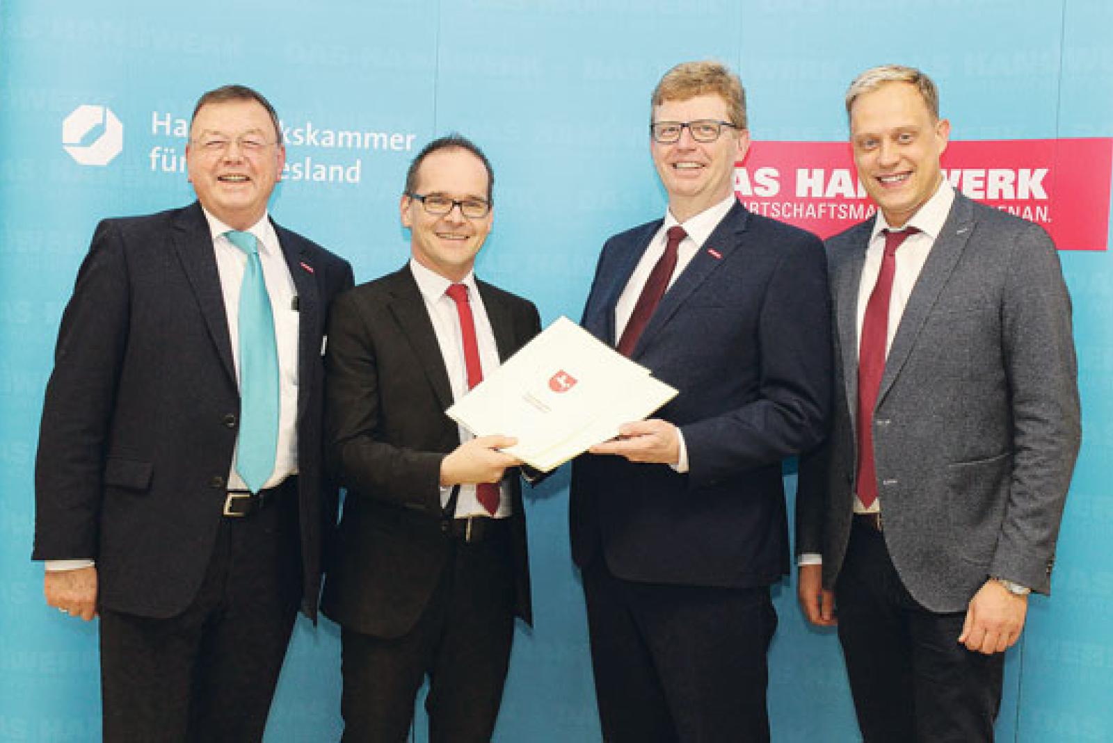 Wenige Tage vor Weihnachten hat der Niedersächsische Kultusminister Grant Hendrik Tonne ein Geschenk für das ostfriesische Handwerk ausgehändigt.