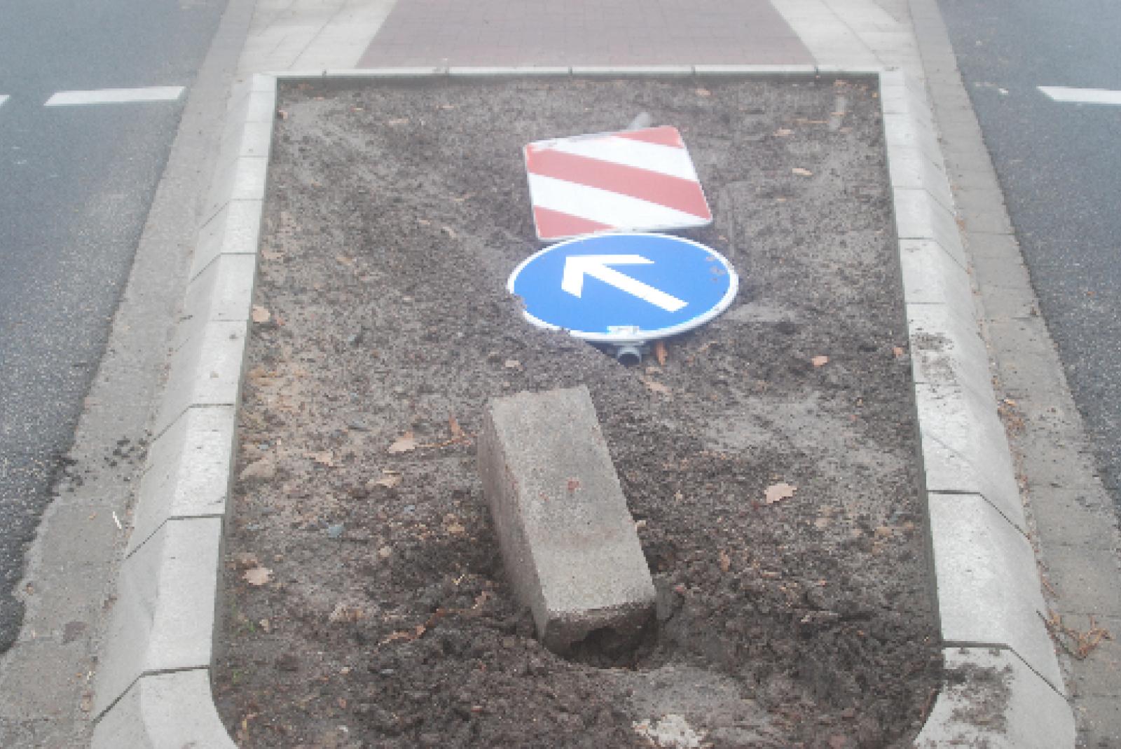 Autofahrer überfährt Kreisel-Schild an der B 436