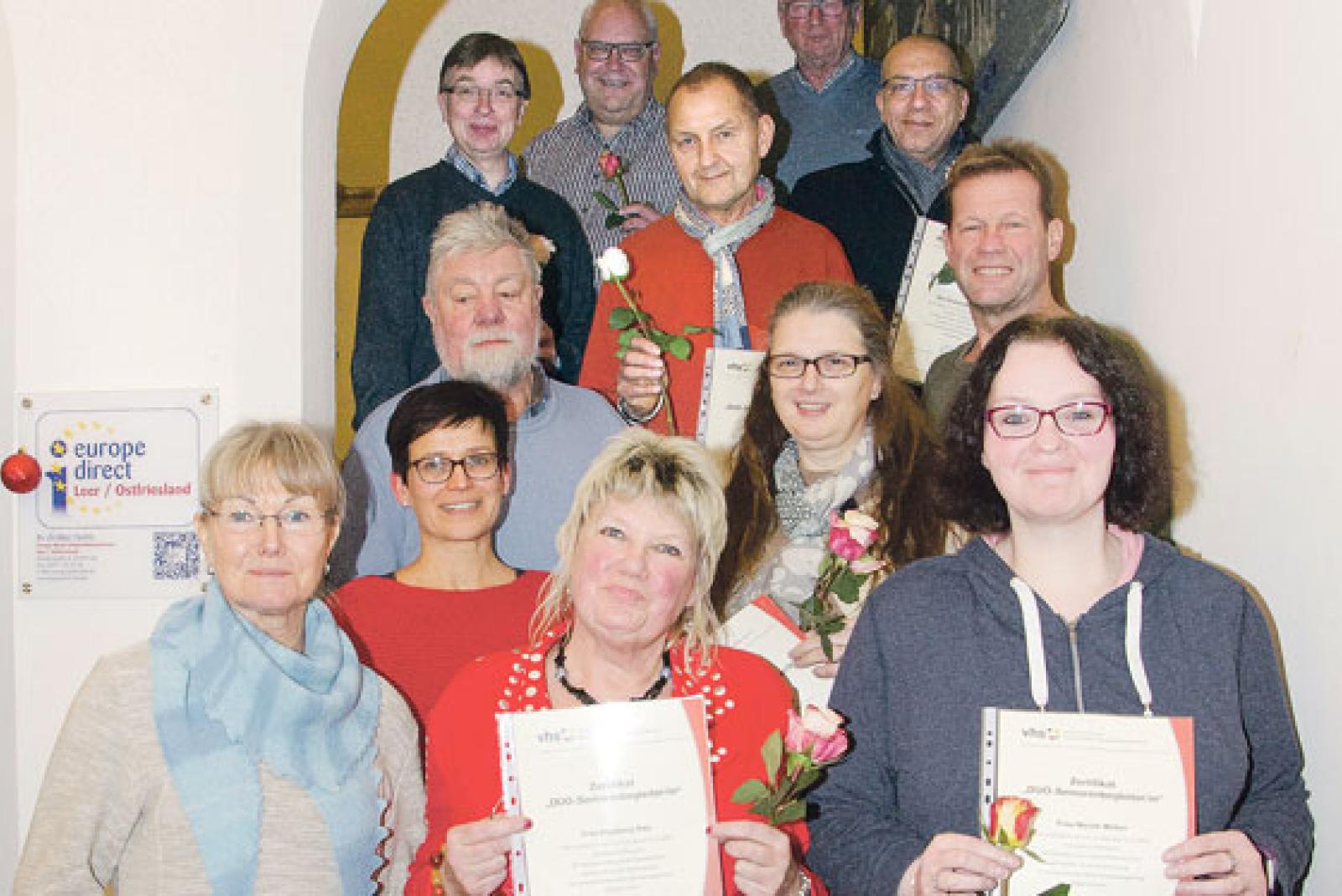 In Kooperation haben die Volkshochschule Leer und der Senioren- und Pflegestützpunkt des Landkreises Leer zwölf ehrenamtliche »DUO-Seniorenbegleiter« ausgebildet.