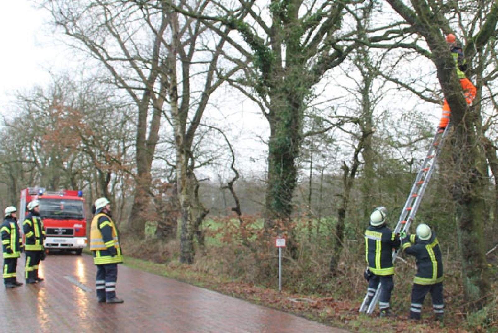 Die Feuerwehr war im Einsatz an der Holthuser Straße, hier drohte ein Baum umzustürzen.
