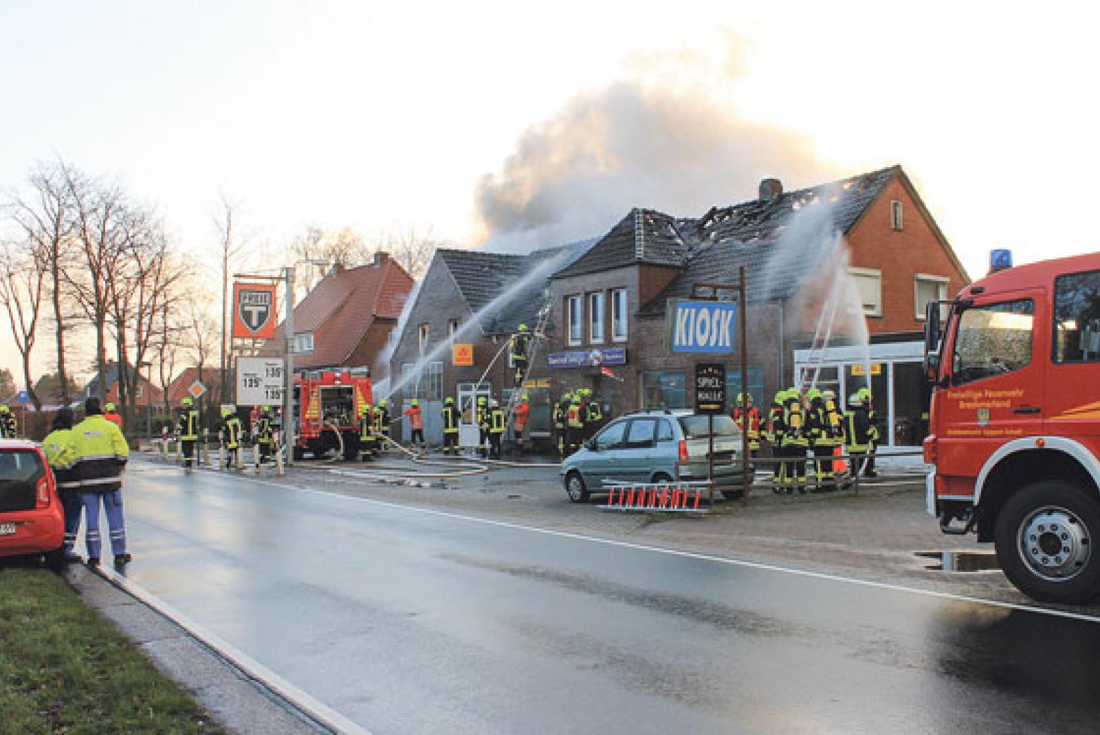 Die Feuerwehren Rechtsupweg, Marienhafe, Upgant-Schott und Osteel wurden zusammen mit dem in Norden stationierten Einsatzleitwagen 2 um 8.52 Uhr alarmiert. Beim Eintreffen der ersten Einsatzkräfte wurde zunächst auf die Sicherung der Ottokraftstoffe geachtet und eine Erkundung vorgenommen. »Alle Personen waren bereits aus dem Gebäude heraus. Eine Gefahr ging durch die Tankstelle nicht aus, da sich das Feuer im Dach befand«, heißt es in einer Mitteilung der Feuerwehr.