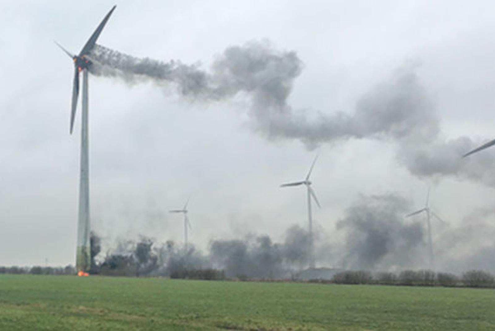 Windkraftanlage in Flammen