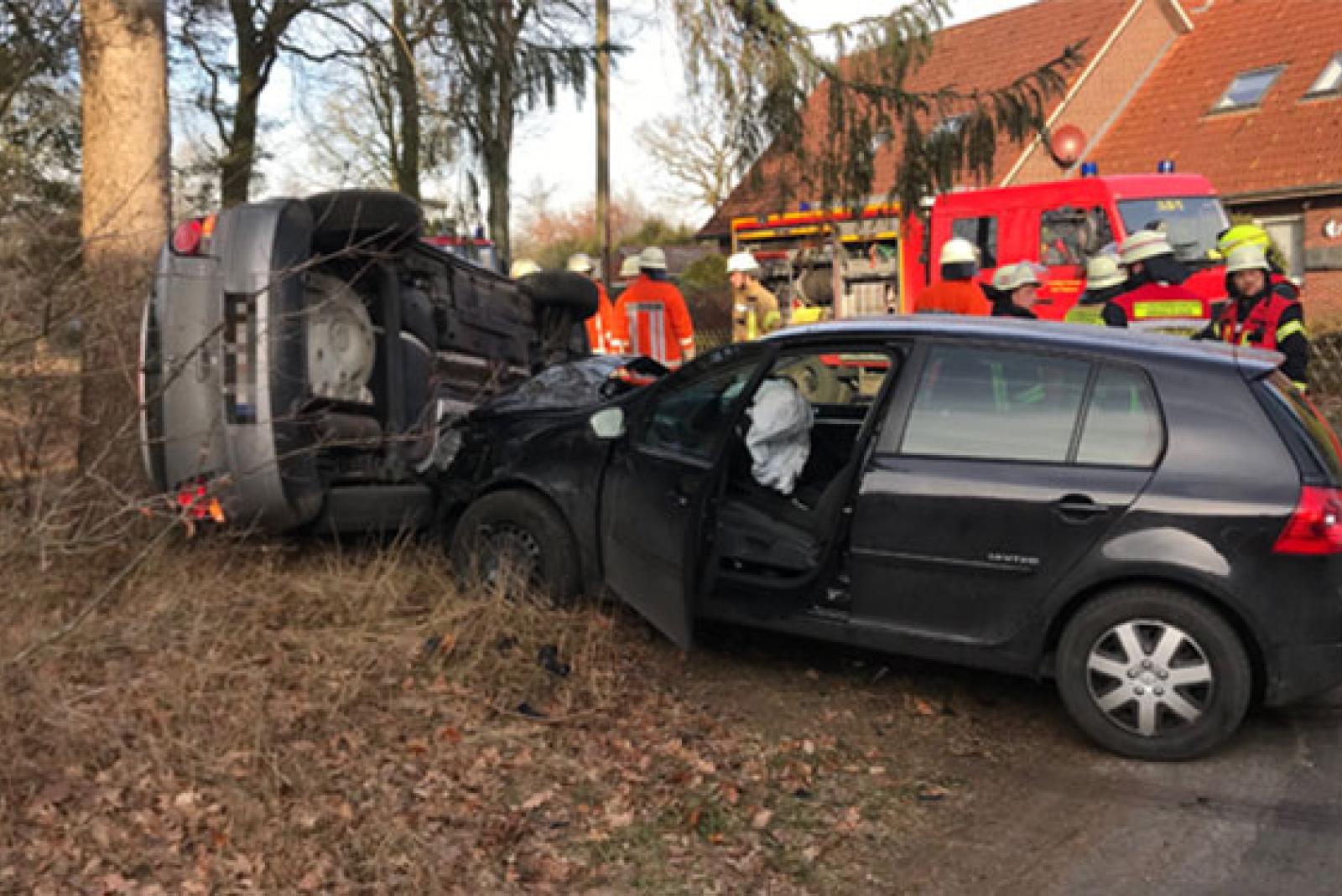 Wie die Leeraner Kreisfeuerwehr mitteilte, waren ein VW-Golf sowie ein VW-Polo an dem Unfall beteiligt. Beide Fahrzeuge wurden durch die heftige Kollision schwer beschädigt. Der Polo drehte sich auf die Seite und blieb vor einem Baum liegen. Die Fahrerin wurde in ihrem Wagen eingeschlossen.