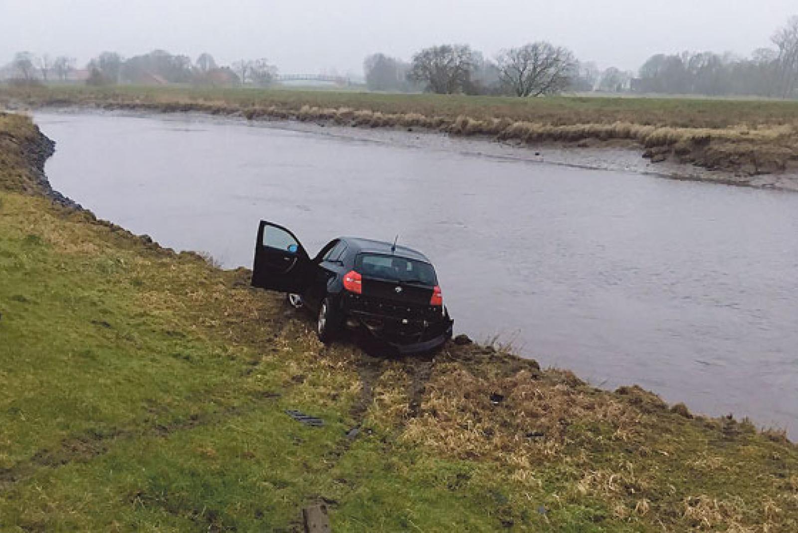 Glück im Unglück hatte heute in den frühen Morgenstunden eine Rhauderfehnerin bei einem Verkehrsunfall in Backemoor. Mit ihrem Auto überfuhr die junge Frau den Deich an der Leda, der BMW kam erst direkt am Ufer des Flusses zum Stillstand. Die Fahrerin blieb unverletzt.