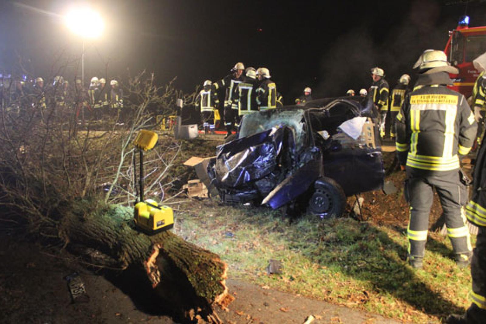 Wie die Kreisfeuerwehr Aurich mitteilte, war der Fahrer kurz vor dem Ortseingang Strackholt aus noch ungeklärter Ursache mit seinem Pkw von der Fahrbahn abgekommen und gegen einen Baum geprallt. Das Auto kam schließlich im Straßengraben zum Stillstand.