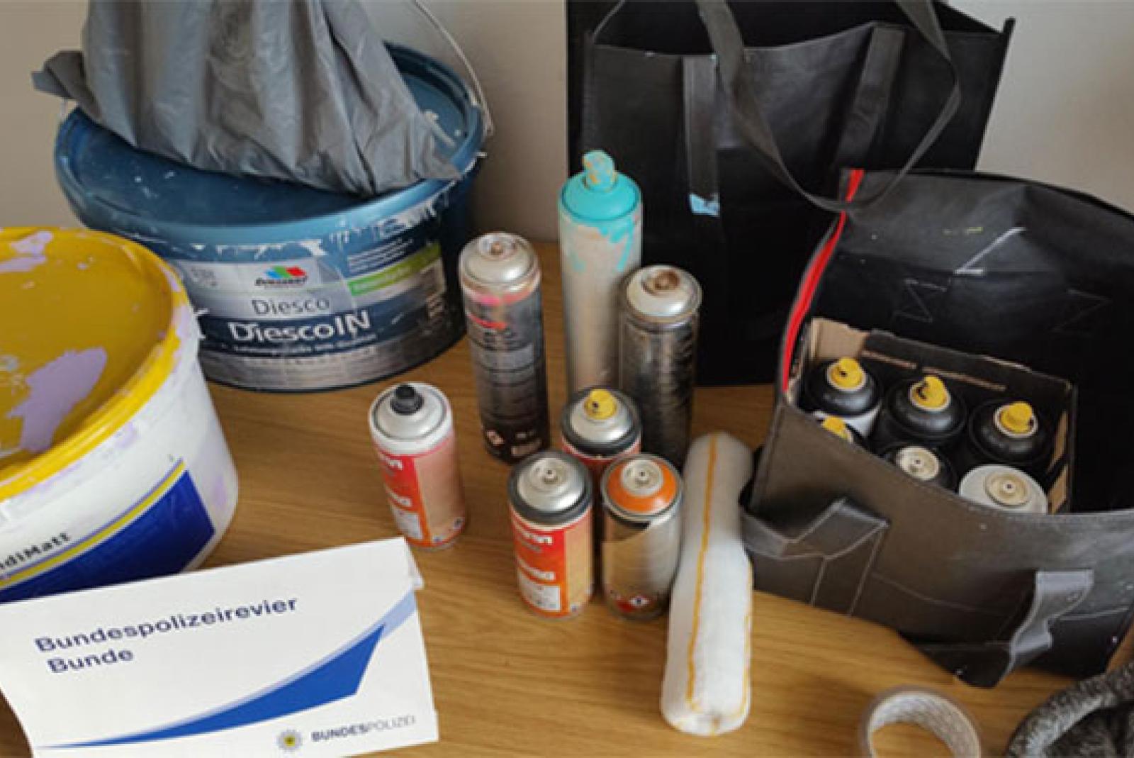Wie die Bundespolizei heute mitteilte, stand der betroffene Personenzug von Freitagabend bis Samstagmorgen auf einem Abstellgleis im Bahnhof in Leer. In den frühen Morgenstunden des Samstags beschmierten bislang unbekannte Täter den Zug großflächig, ein Lokführer beobachtete gegen 5 Uhr morgens, wie mehrere Personen eilig vom Tatort flüchteten. Dabei ließen sie verschiedene Sprayer-Utensilien zurück.