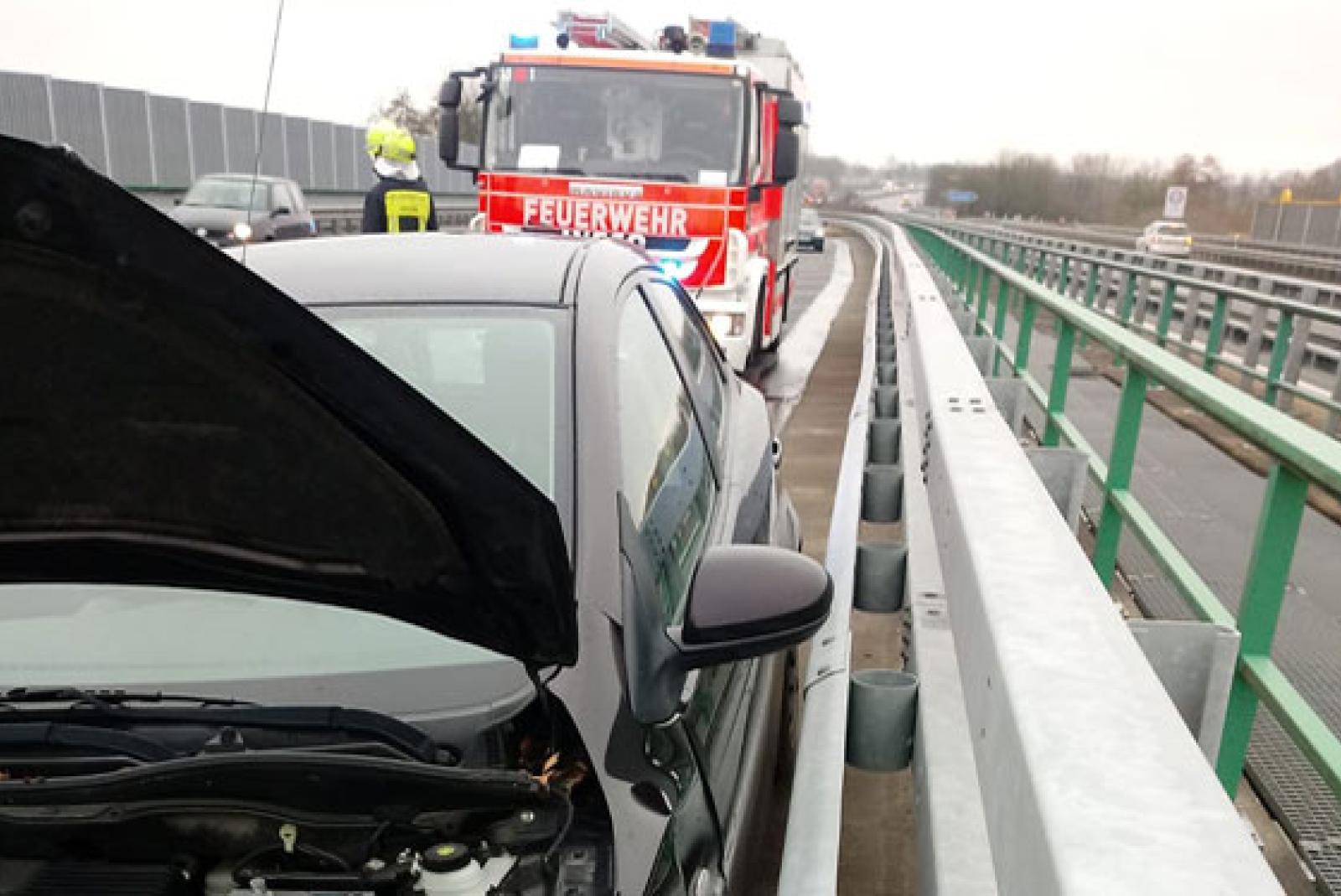 Wenig später, um 8.30 Uhr, ereignete sich in Emden ein weiterer Unfall, bei dem ein Autofahrer leicht verletzt wurde. Auf der A 31, Höhe der Anschlussstelle Emden-Mitte, war einem aus Richtung Leer kommenden 63-jährigen Emder während der Fahrt schwindelig geworden. Er kam nach rechts von der Fahrbahn ab und prallte gegen die Außenschutzplanke. Anschließend wurde der Wagen über die Fahrbahn geschleudert. Auf dem Überholfahrstreifen kam der Mazda letztendlich zum Stehen.