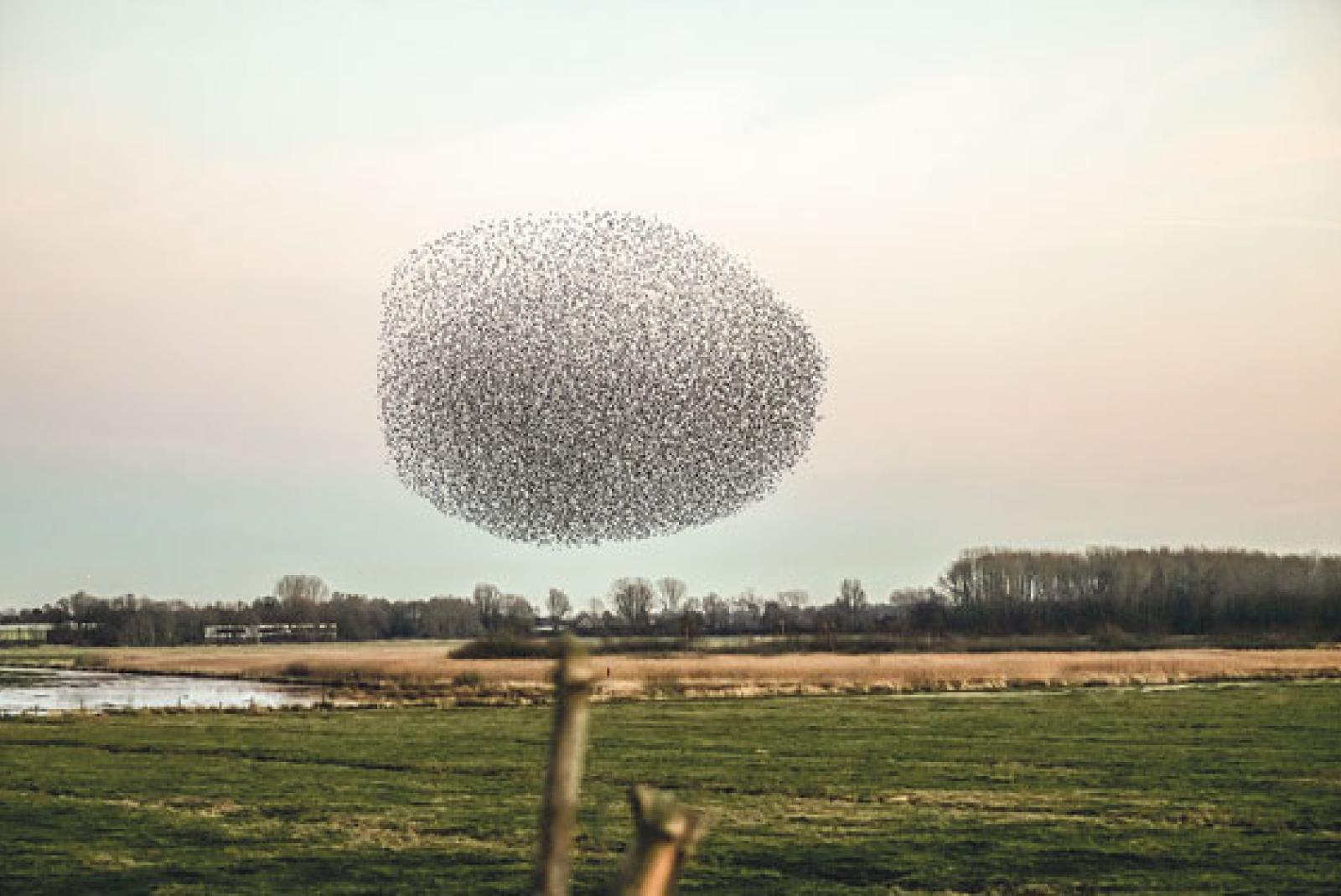 »Formationsflug« von Vögelschwärmen über den Meentelanden