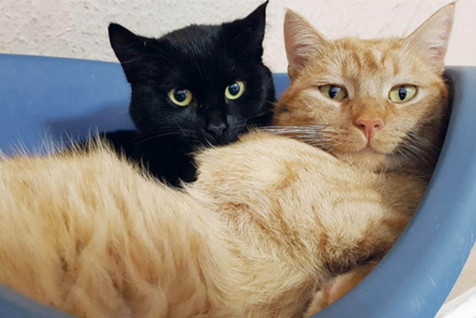 Optisch sind sie sehr unterschiedlich, trotzdem hängen sie sehr aneinander: Die Katzen »Bibi« und »Buddy« suchen ein liebevolles neues Zuhause.