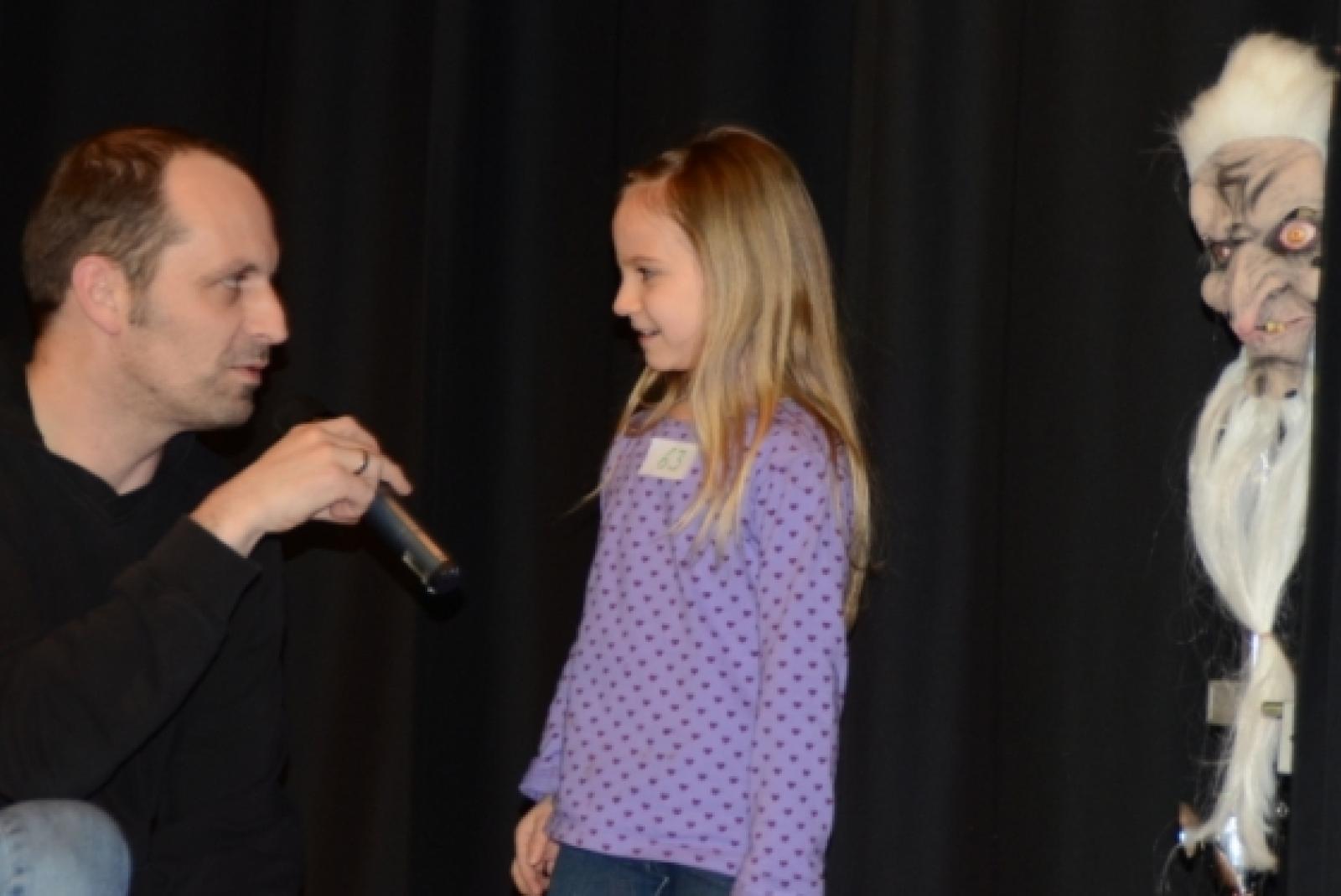 Talk mit Talenten: Jugendbüro-Mitarbeiter Werner Hoffmann moderierte das Casting in der DGA und fühlte den Bewerbern (hier Lisann?Dirksen) ganz sanft auf den Zahn.?Rechts lauert eines der Gruselgeschöpfe aus der Zauberwelt jenseits des Portals. © Hanken