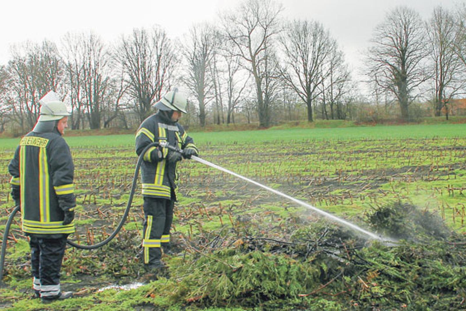 Einen brennenden Haufen Strauchschnitt hat die Feuerwehr heute Vormittag am Osseweg in Dielerheide gelöscht. Ein Passant hatte das Feuer bemerkt und die Brandbekämpfer gerufen.