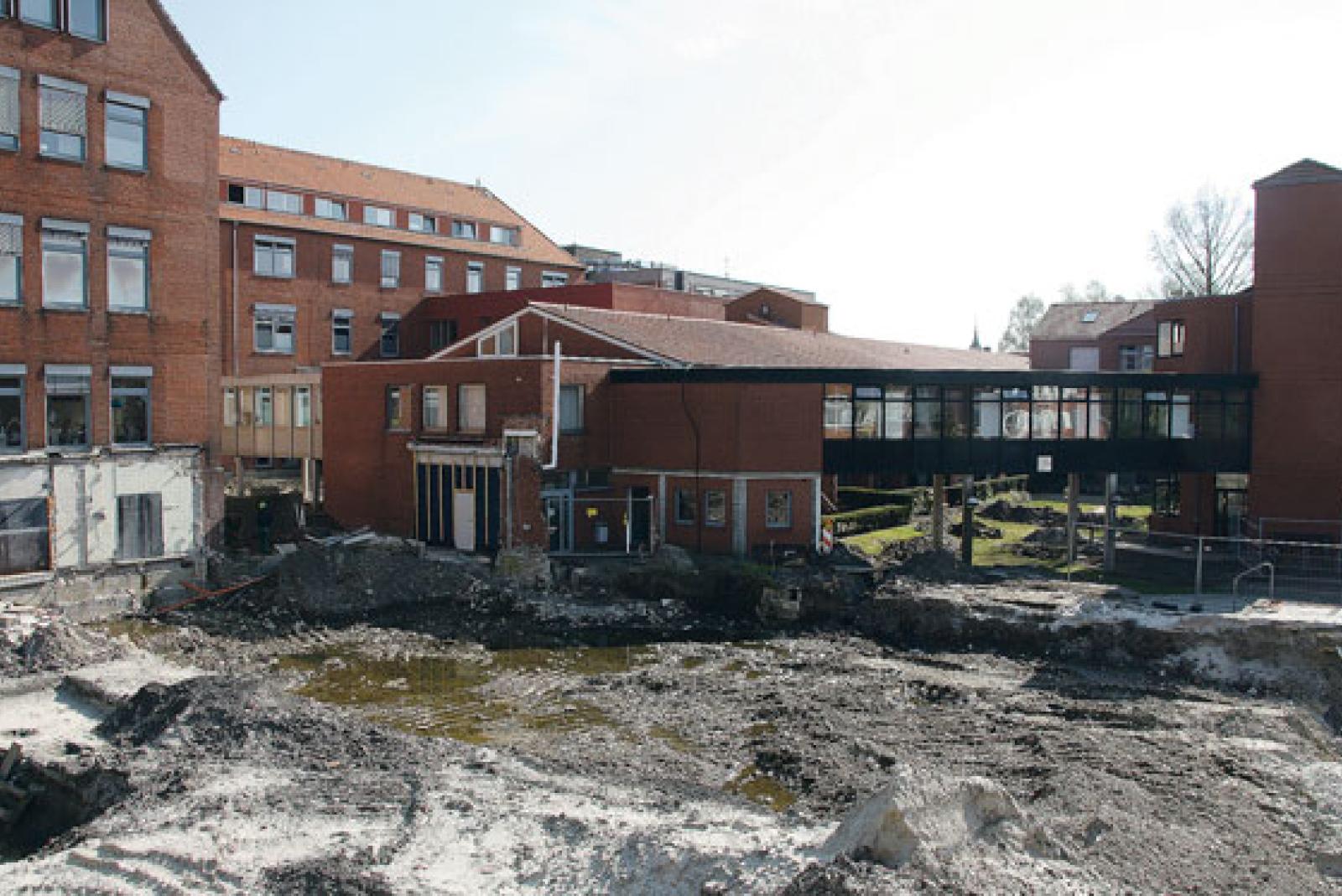 Der Neubau der Intensivstation für das Borromäus-Hospital in Leer schreitet voran. Das alte Küchengebäude der Klinik wurde inzwischen vollständig abgerissen. Die Archäologen sind bei ihren Grabungen auf keinen größeren Fund gestoßen. Nun ...