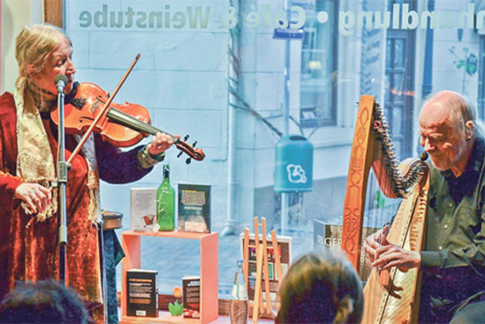 Beim ausverkauften Konzert im Leeraner Taraxacum führte kürzlich das Duo Máire Breatnach (Geige) und Thomas Loefke (Harfe) die Zuhörer auf eine musikalische Reise nach Irland.
