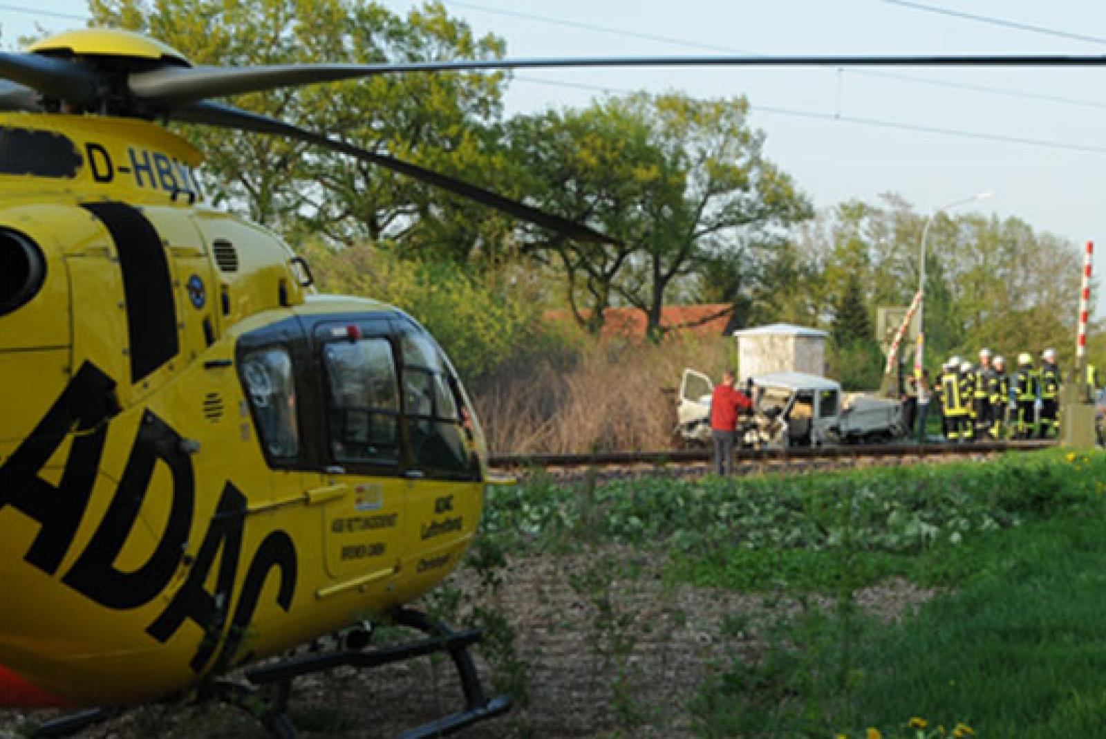 Die ersten Einsatzkräfte versorgten den Fahrer des Kleintransporters, der sich selbst nicht mehr aus seinem Wagen befreien konnte. Nach Eintreffen des Rettungsdienstes übernahm dieser dann die Versorgung des Patienten. Der 47-Jährige wurde durch den Unfall schwer, jedoch nicht lebensgefährlich, verletzt und mit einem Rettungswagen in ein Krankenhaus gebracht. Der angeforderte Rettungshubschrauber landete zwar noch an der Einsatzstelle, wurde dann aber nicht mehr eingesetzt. Die Feuerwehr unterstützte im Anschluss noch bei den Bergungsarbeiten und übergab die Einsatzstelle dann an einen Notfallmanager der Deutschen Bahn. Passagiere des Zuges wurden nicht verletzt.