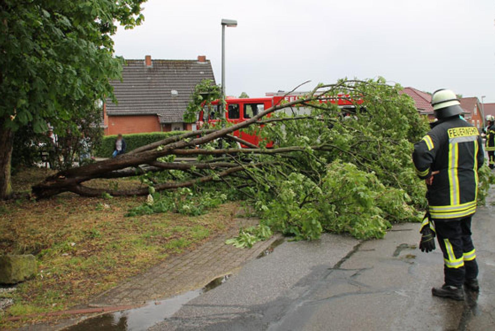 Die Feuerwehr Weener wurde heute um 17.36 Uhr zu einem Hilfeleistungseinsatz mit den Stichworten »Sturmschaden - Baum auf Fahrbahn« alarmiert.