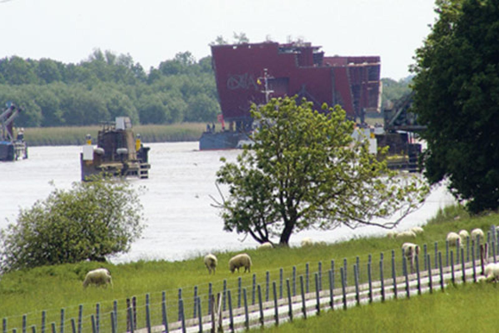 Segment der »Iona« zur Meyer Werft nach Papenburg transportiert